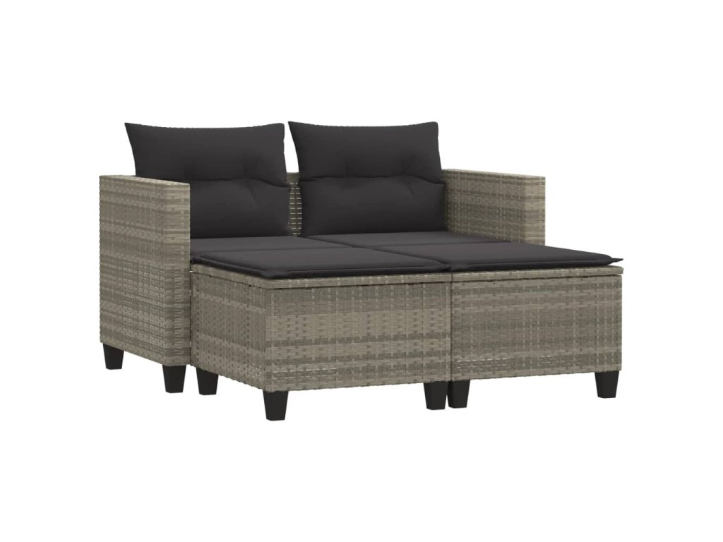 Multidom Záhradná pohovka 2-miestna s taburetkami bledosivá polyratan