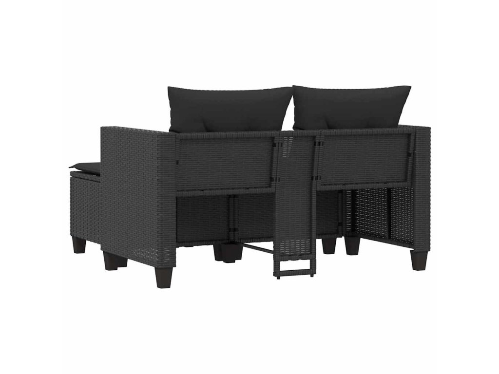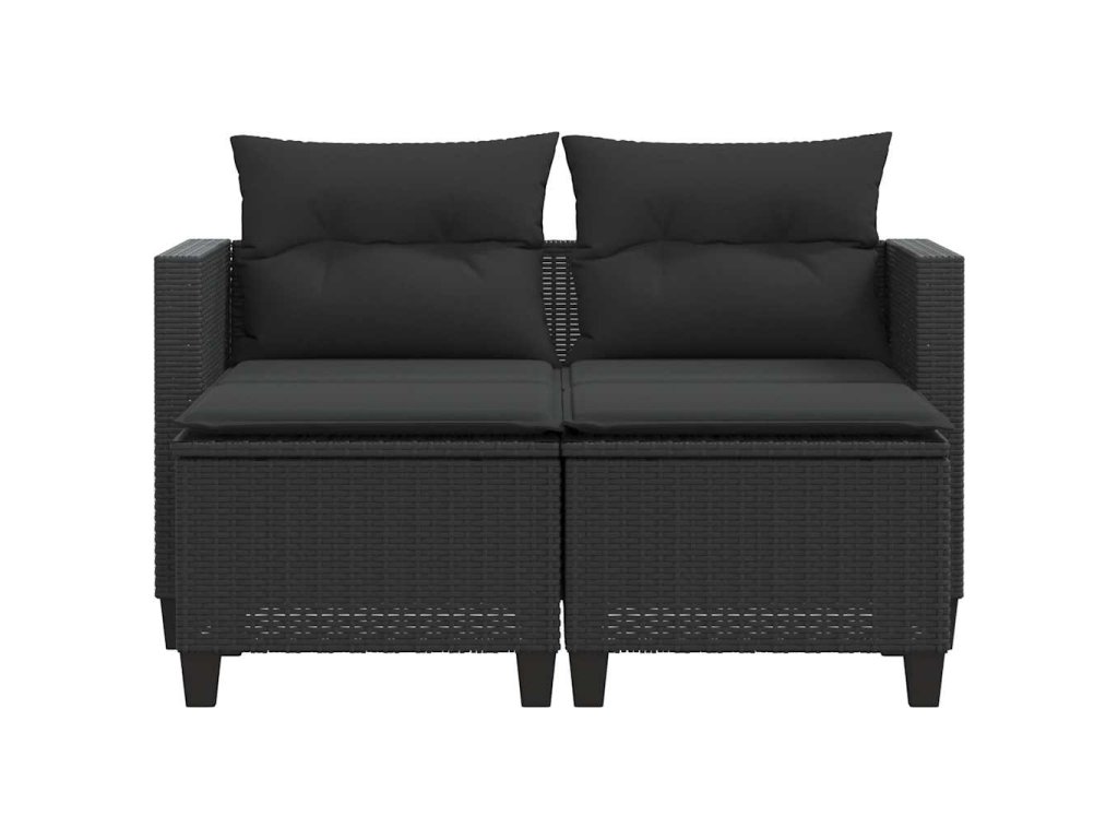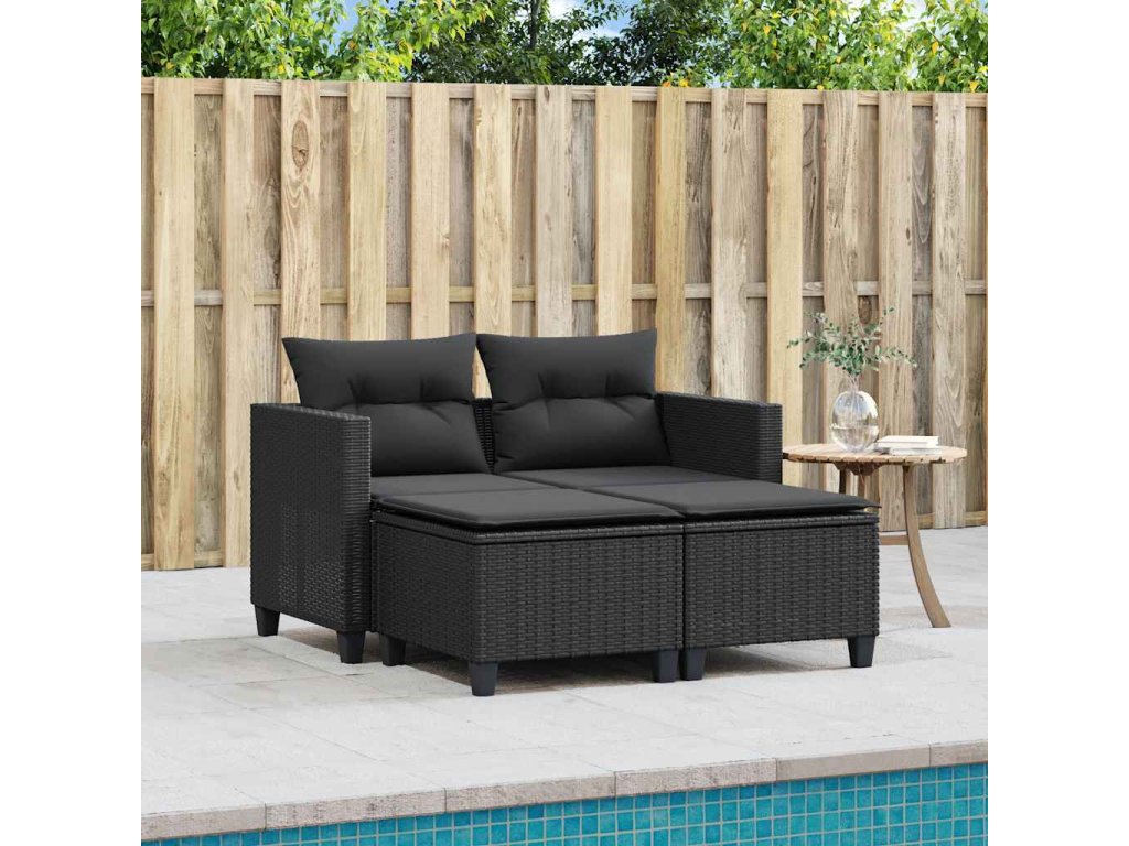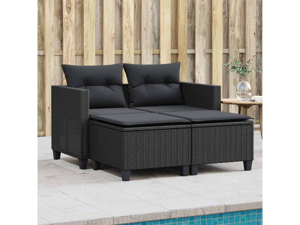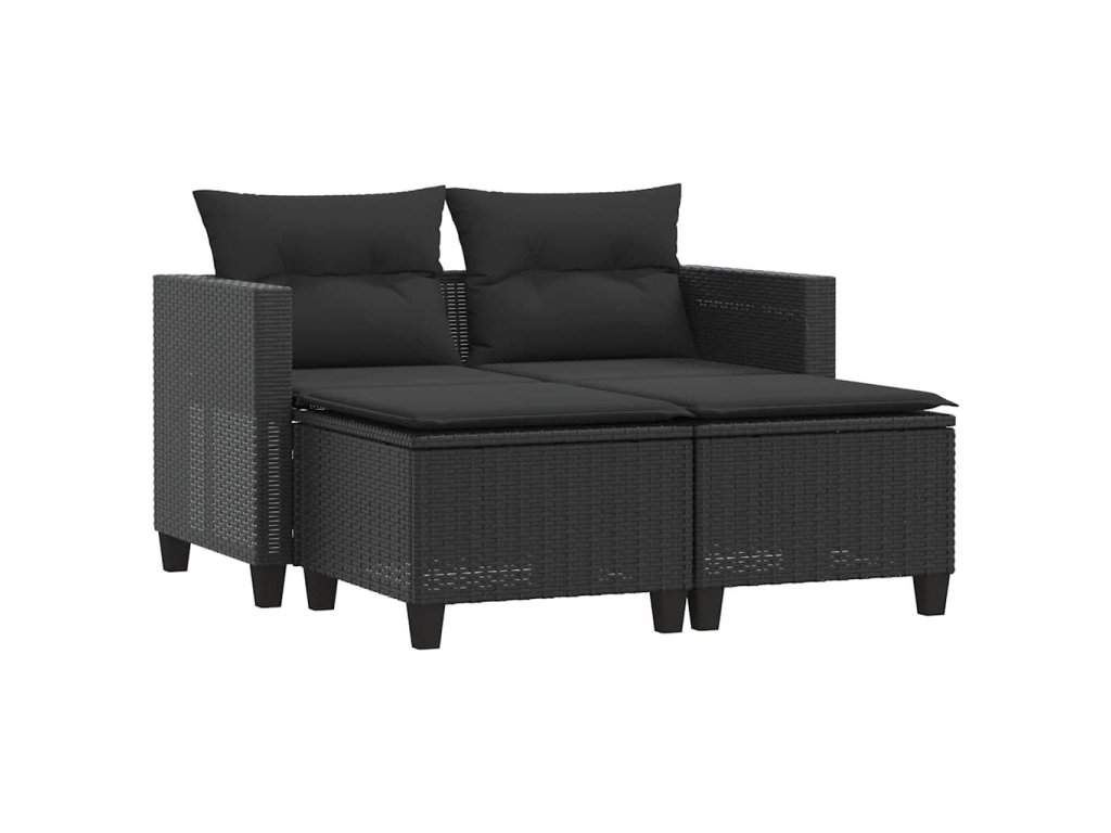 Multidom Záhradná pohovka 2-miestna s taburetkami čierna polyratan