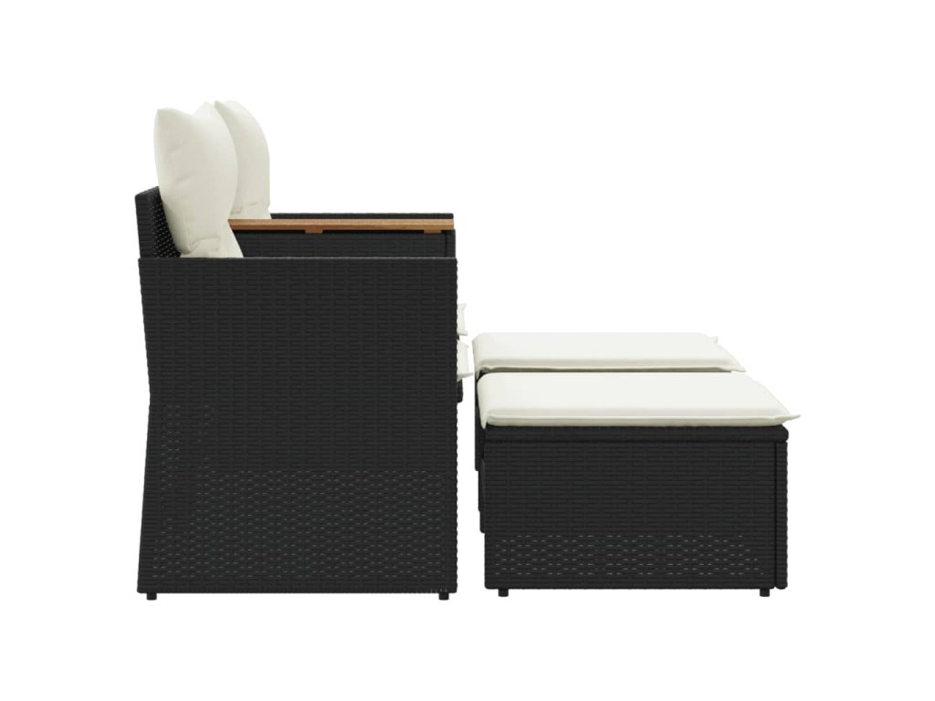 Multidom Záhradná pohovka 2-miestna s taburetkami čierna polyratan