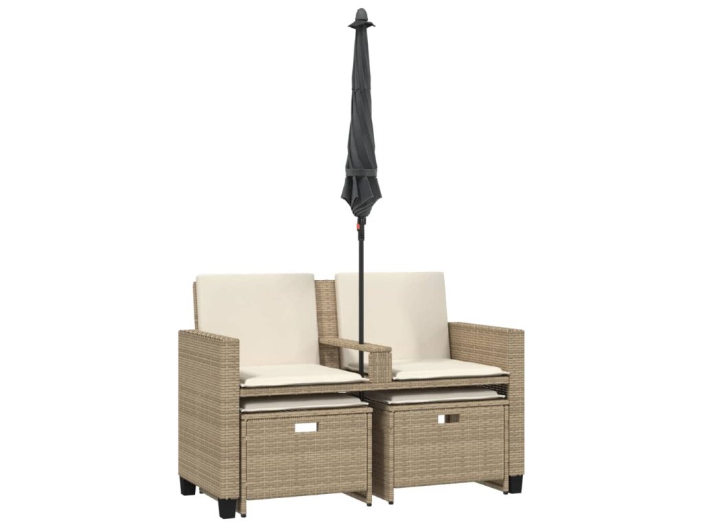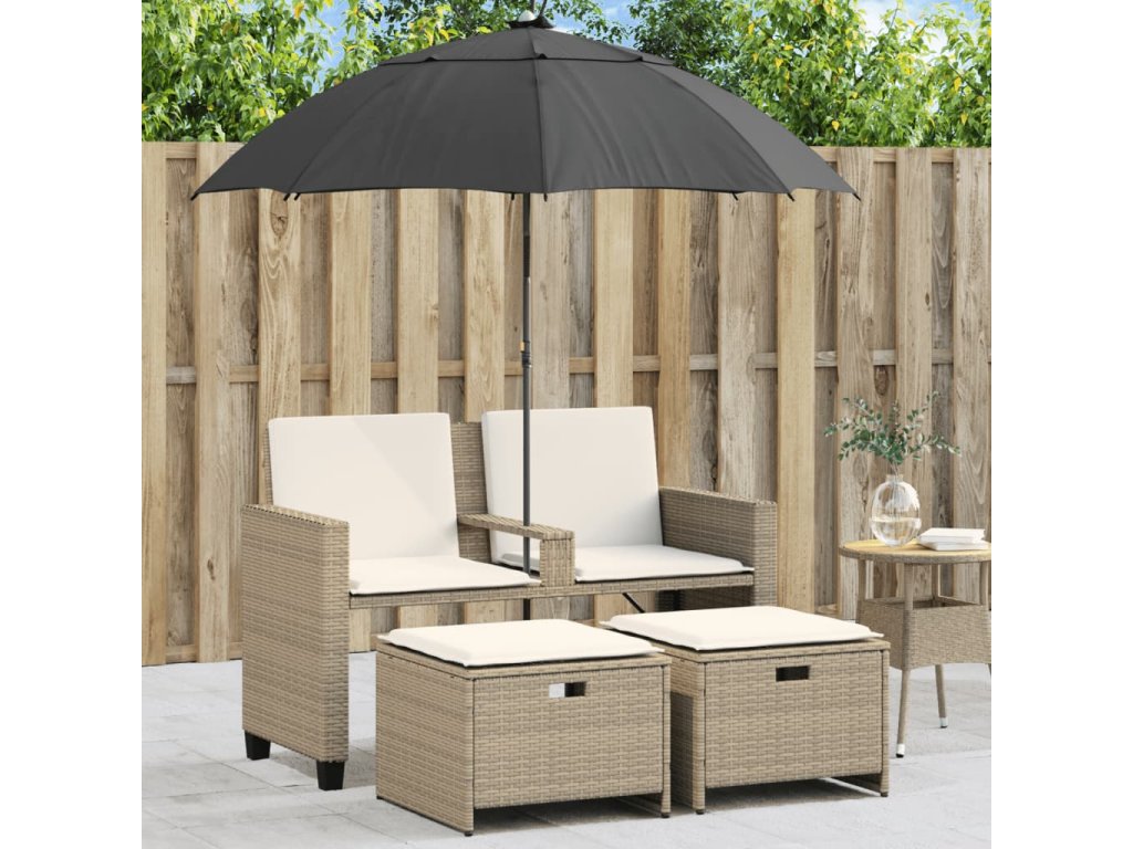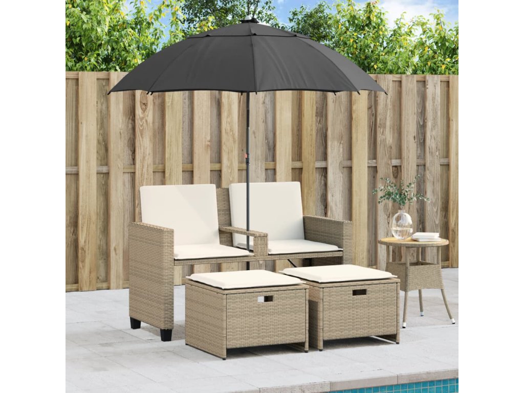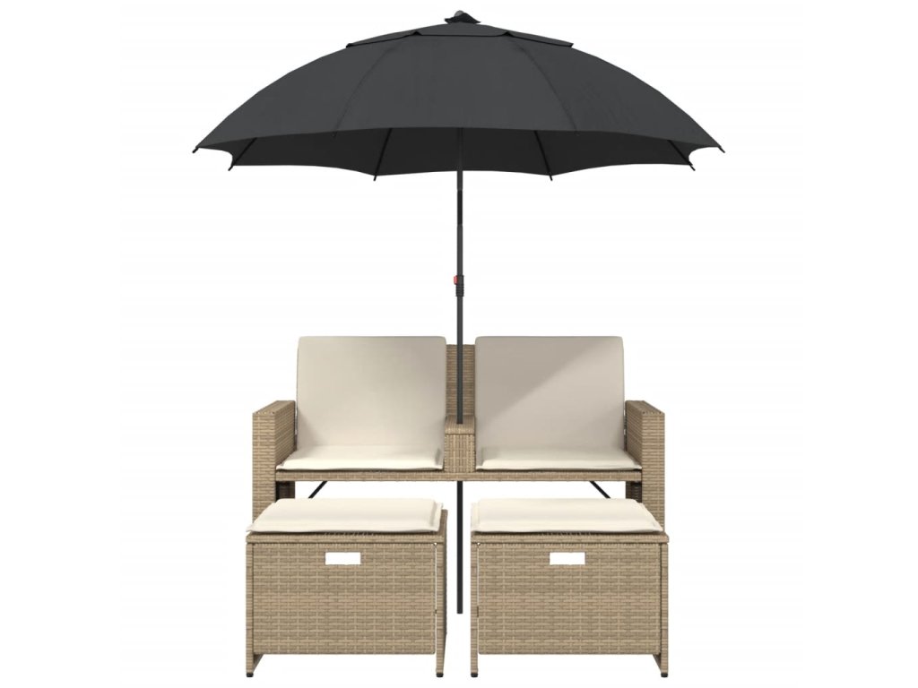 Multidom Záhradná pohovka 2-miestna slnečník+taburetky béžová polyratan