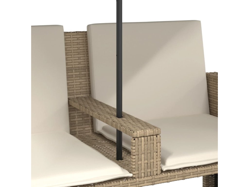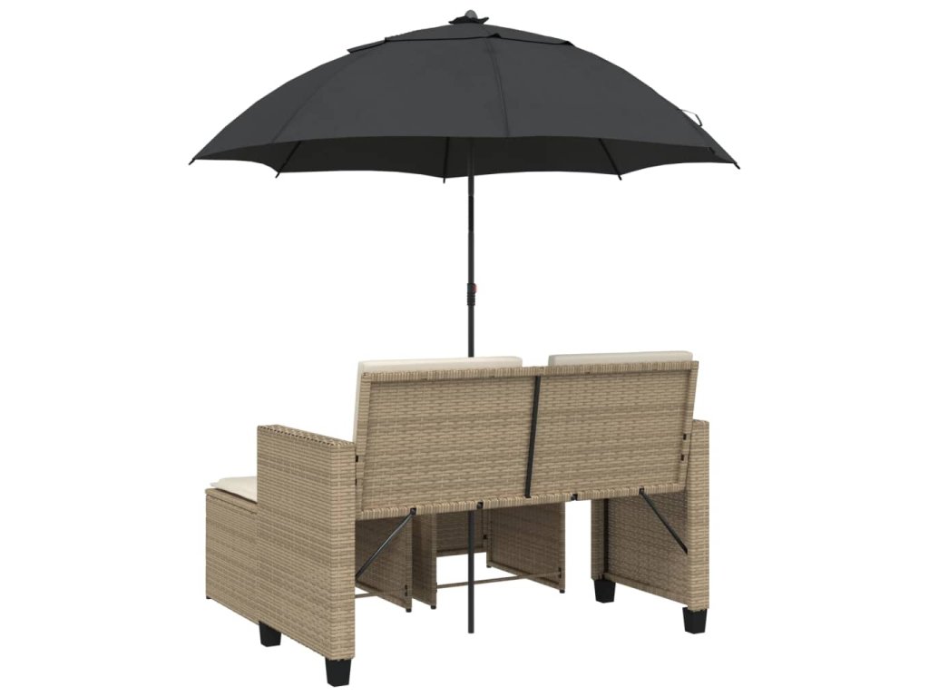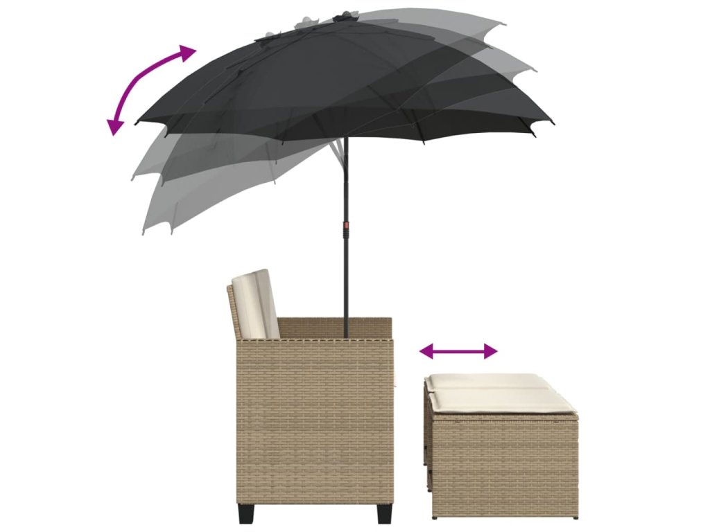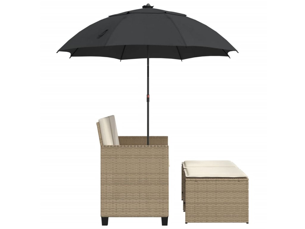 Multidom Záhradná pohovka 2-miestna slnečník+taburetky béžová polyratan