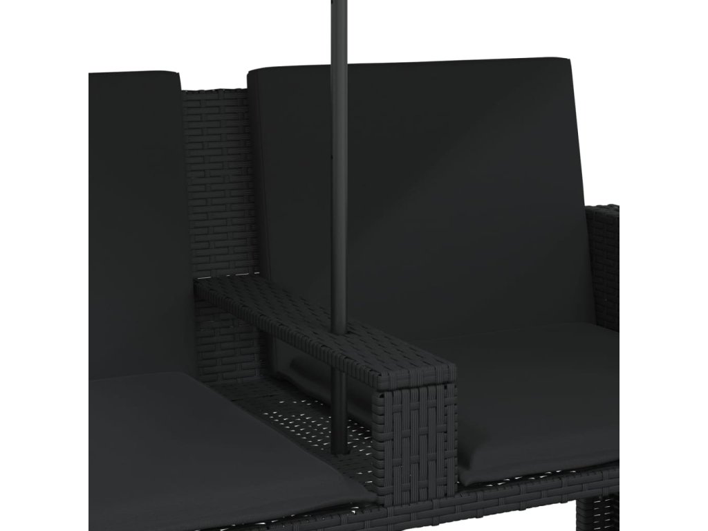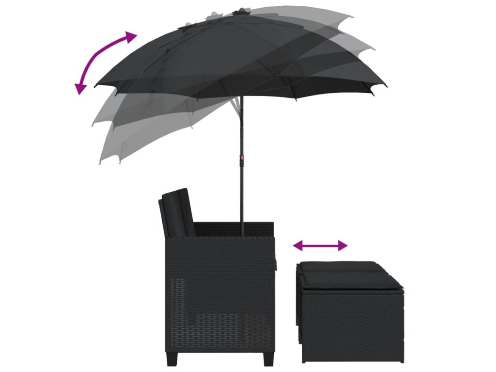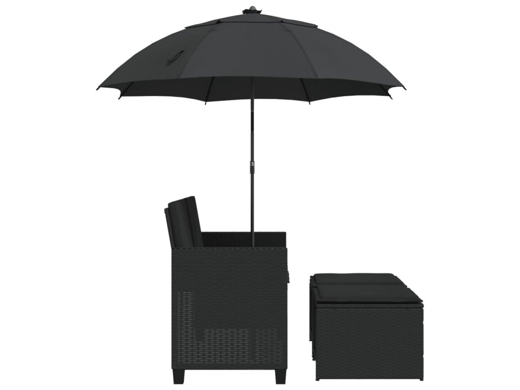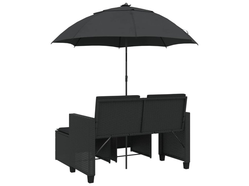 Multidom Záhradná pohovka 2-miestna slnečník+taburetky čierna polyratan