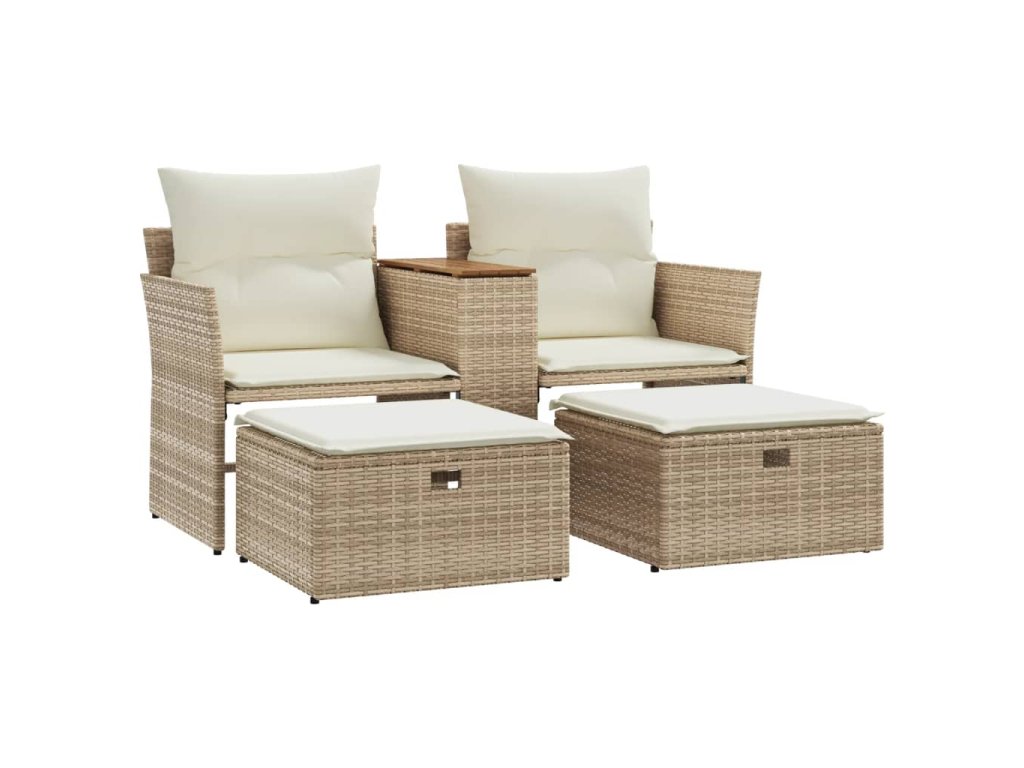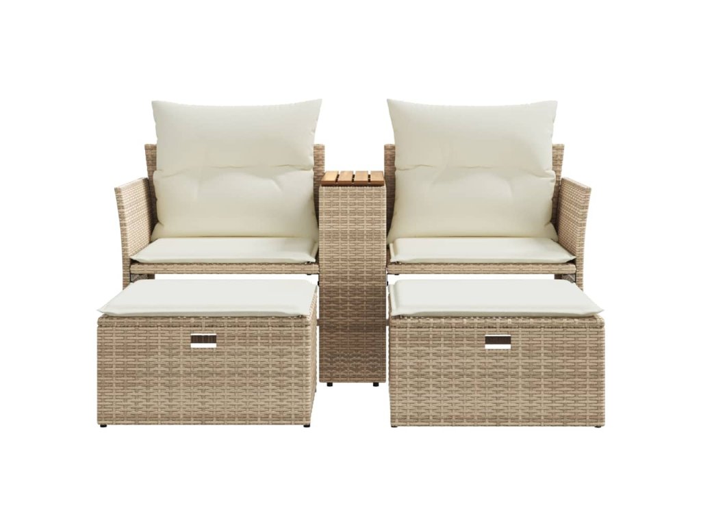 - Pohodlný centrálny stôl: Tento vonkajší nábytok je vybavený integrovaným centrálnym stolíkom, ktorý poskytuje praktické miesto na odkladanie vašich potrieb na dosah.