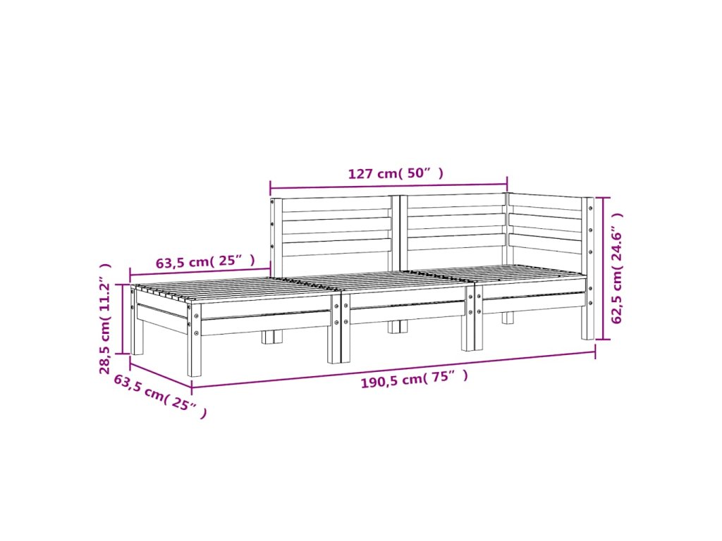 - Celkové rozmery: 190,5 x 63,5 x 62,5 cm (Š x H x V)