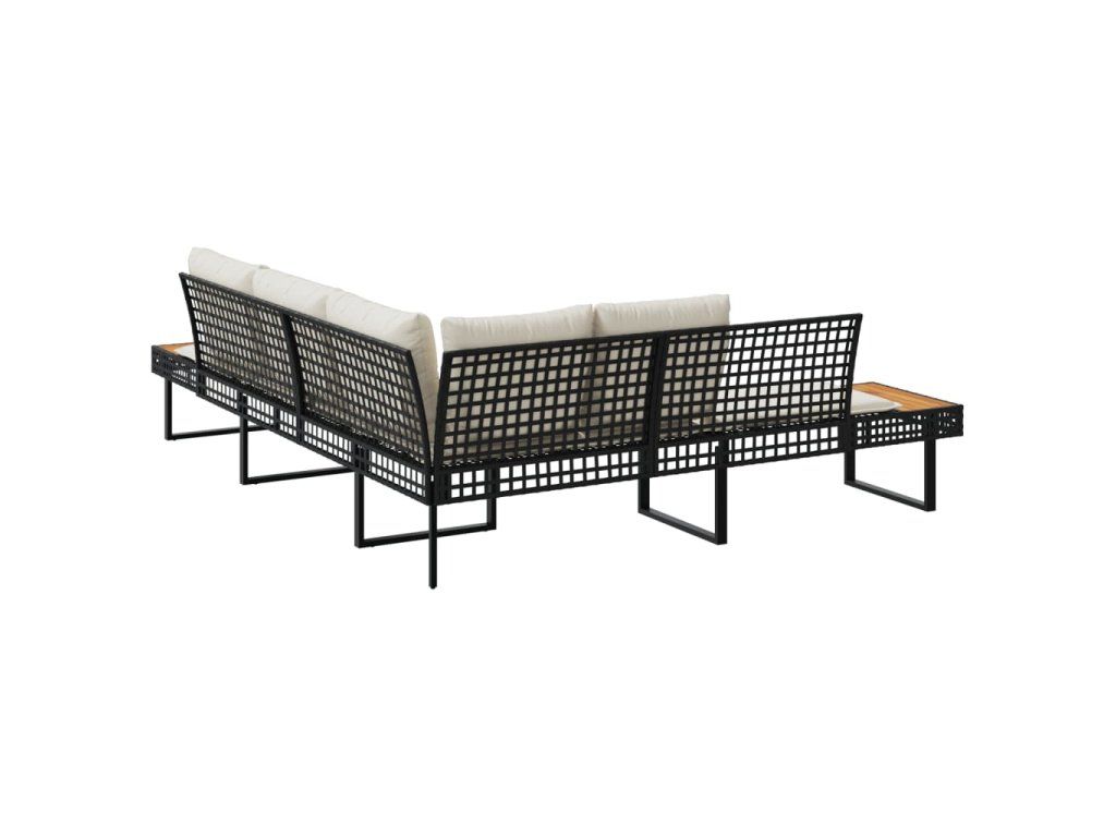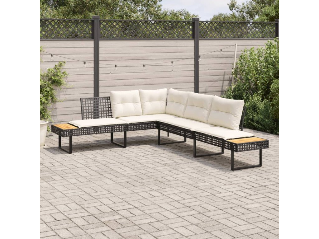 Multidom Záhradná pohovka+podložky, tvar L, čierna, polyratan a akácia