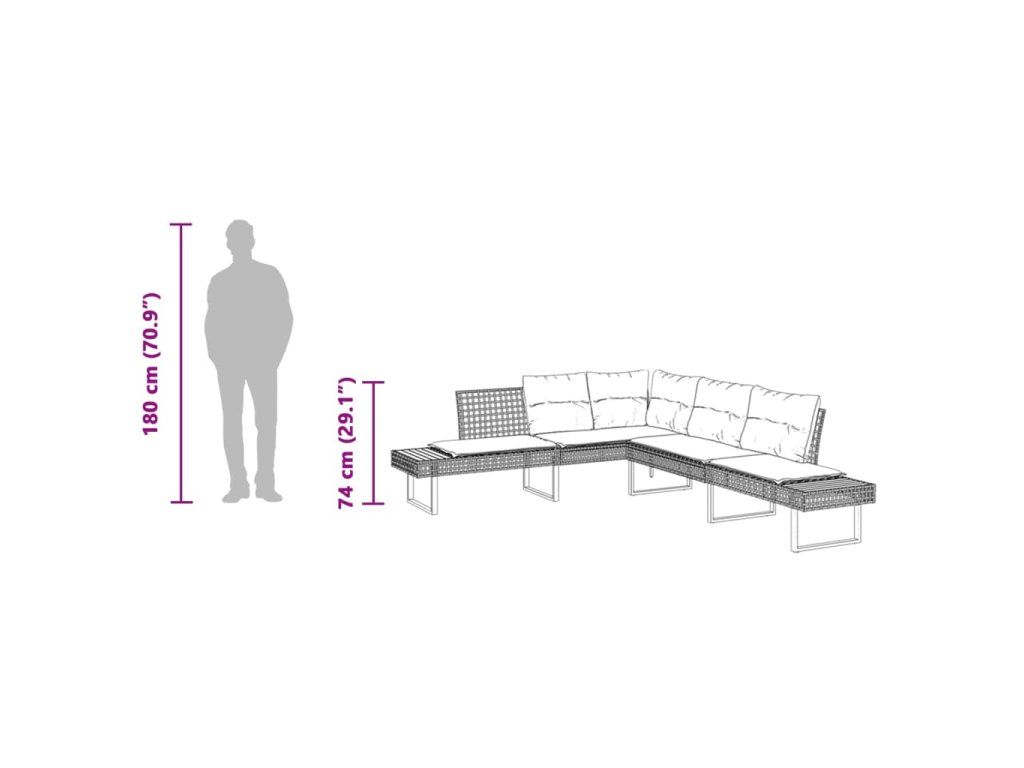 Táto záhradná pohovka v tvare L je dokonalým doplnkom na vašu záhradu, terasu alebo verandu, a poskytuje pohodlný a príjemný priestor na rozhovory s rodinou a priateľmi alebo jednoducho na relaxáciu a užívanie si pobytu vonku.