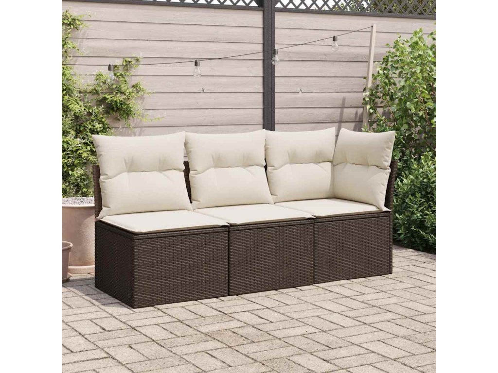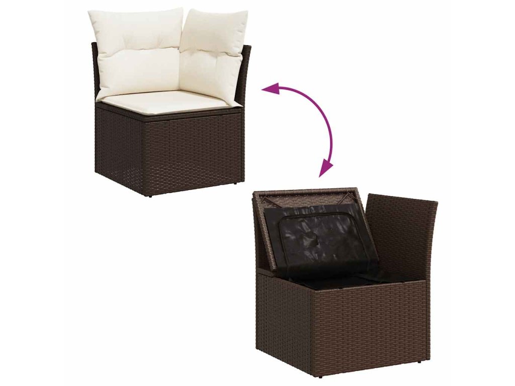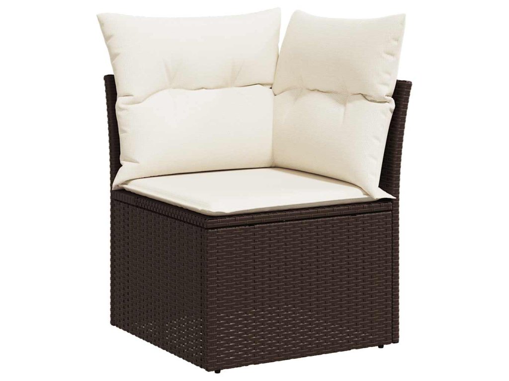 Multidom Záhradná pohovka rohová s vankúšmi hnedá polyratan