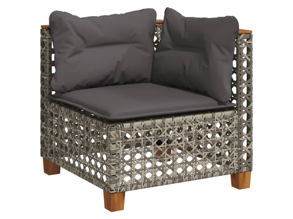 Multidom Záhradná pohovka rohová s vankúšmi sivá polyratanová