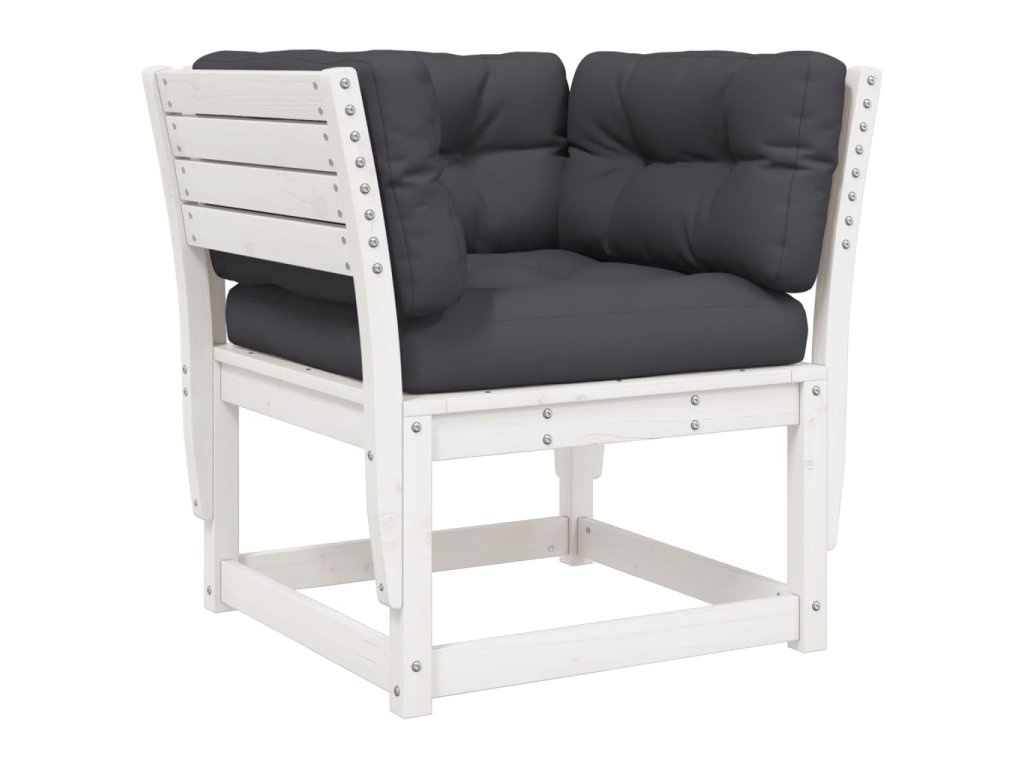 Multidom Záhradná pohovka s opierkami+podložky, biela, borovicový masív