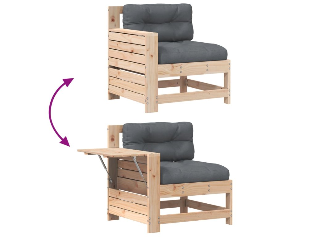 Multidom Záhradná pohovka s opierkou ruky a vankúšom borovicový masív