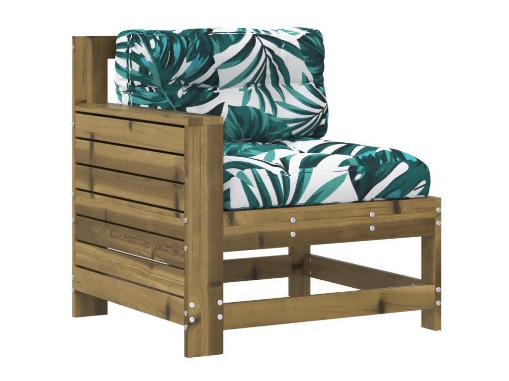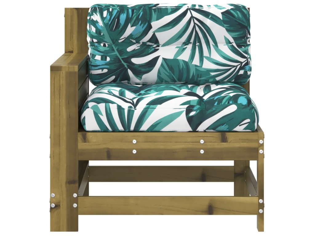 Multidom Záhradná pohovka s opierkou ruky a vankúšom impregnov. borovica