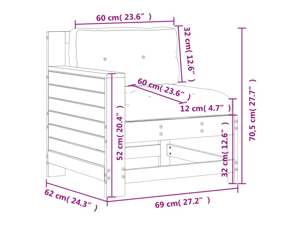Toto drevené záhradné kreslo s vankúšmi predstavuje skvelý doplnok do záhrady, na terasu či na dvor, a poskytne vám ideálne mesto na príjemné posedenia s rodinou a priateľmi počas krásnych slnečných dní.