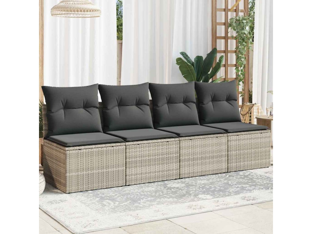 Multidom Záhradná pohovka s podložkami, 4-miestna, svetlosivá, polyratan