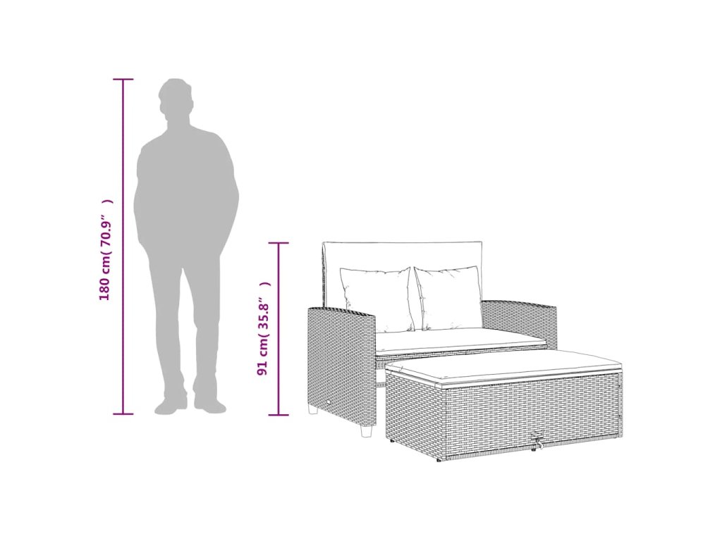 - Všestranná funkčnosť: Tento vonkajší nábytok sa dá použiť ako dvojmiestna lavica alebo rozkladacia pohovka. Jednoducho ju môžete zmeniť na posteľ sklopením operadla a vytiahnutím taburetky spod lavice. Podporné panely za operadlami zvyšujú stabilitu postele.