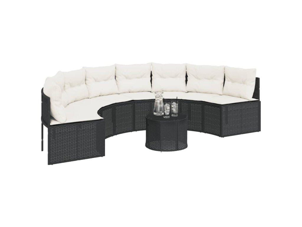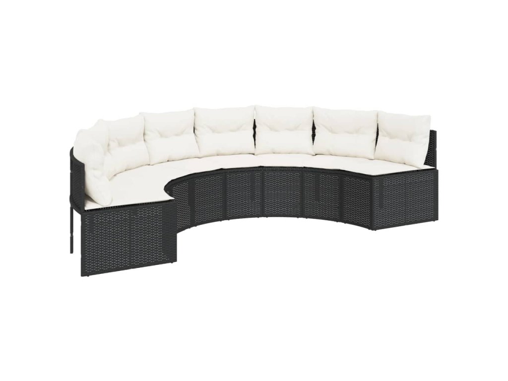 Multidom Záhradná pohovka s podložkami polkruhová čierna polyratan
