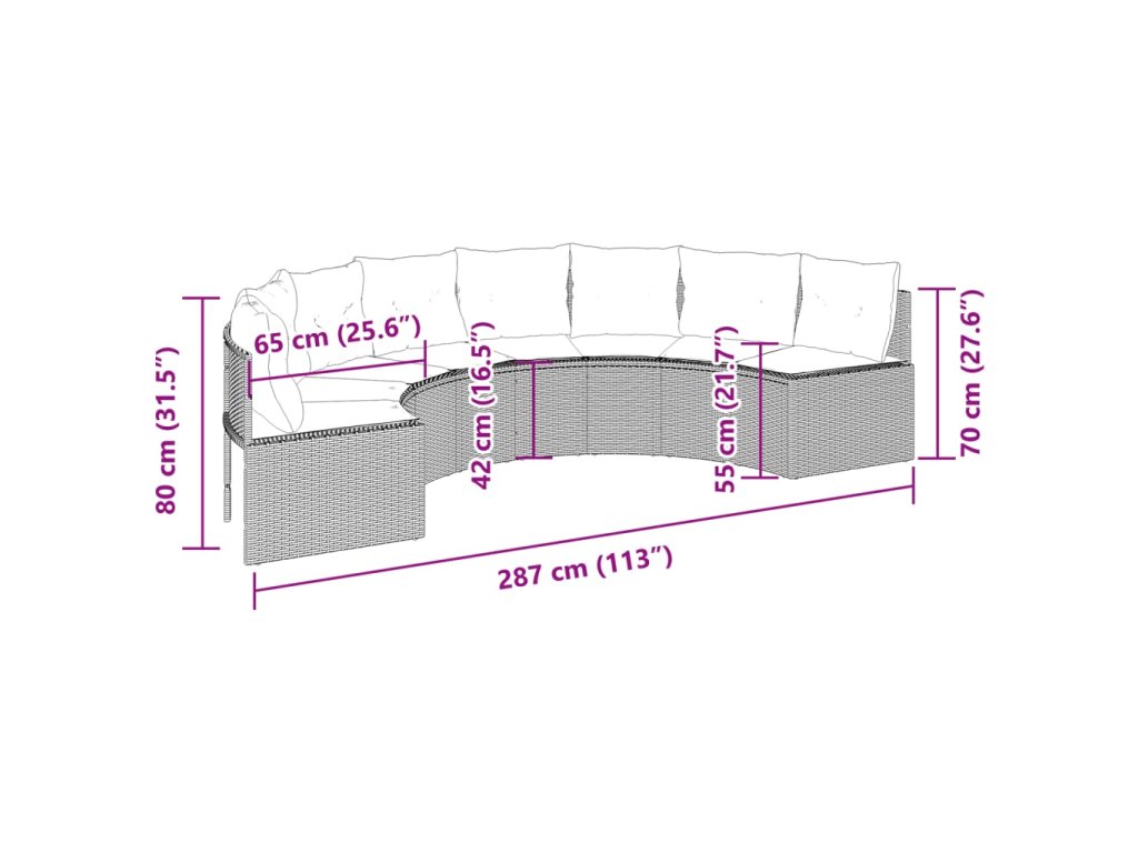 Táto polkruhová záhradná sedačka je dokonalým doplnkom na vašu záhradu, terasu alebo verandu, a poskytuje pohodlný a príjemný priestor na rozhovory s rodinou a priateľmi, alebo jednoducho na relaxáciu a užívanie si pobytu vonku