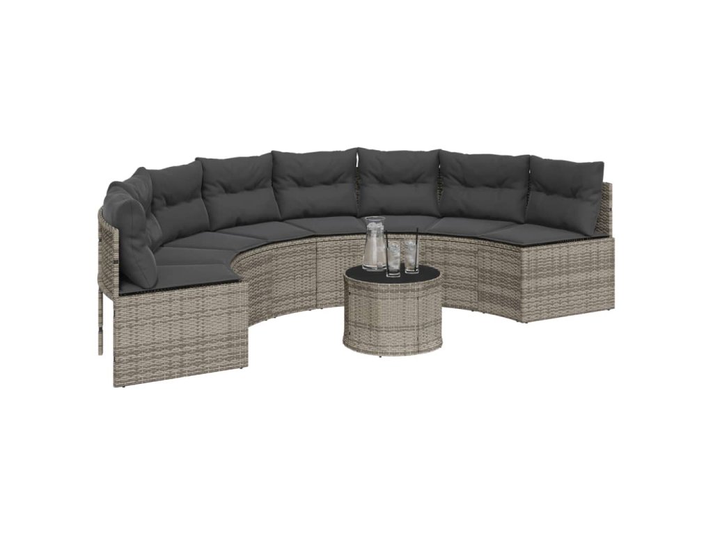 Multidom Záhradná pohovka s podložkami polkruhová sivá polyratan