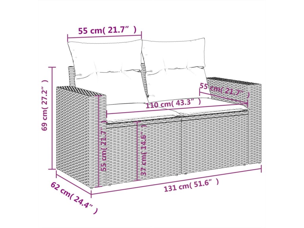 - Pohodlné sedenie: Tento záhradný nábytok s hrubo polstrovanými vankúšmi ponúka pohodlné sedenie. Široké podrúčky tiež poskytujú pohodlné miesto na odloženie mobilného telefónu, pohárov alebo iných drobností, ktoré máte vždy poruke.