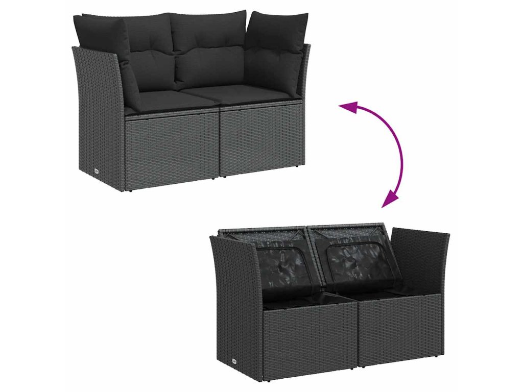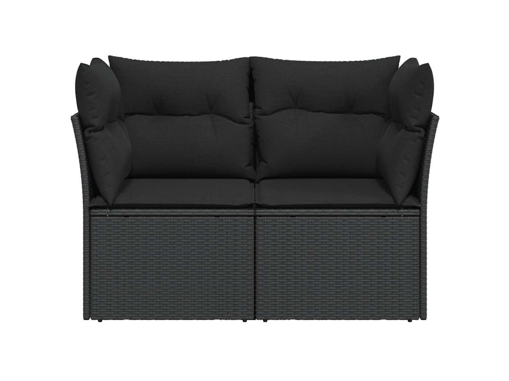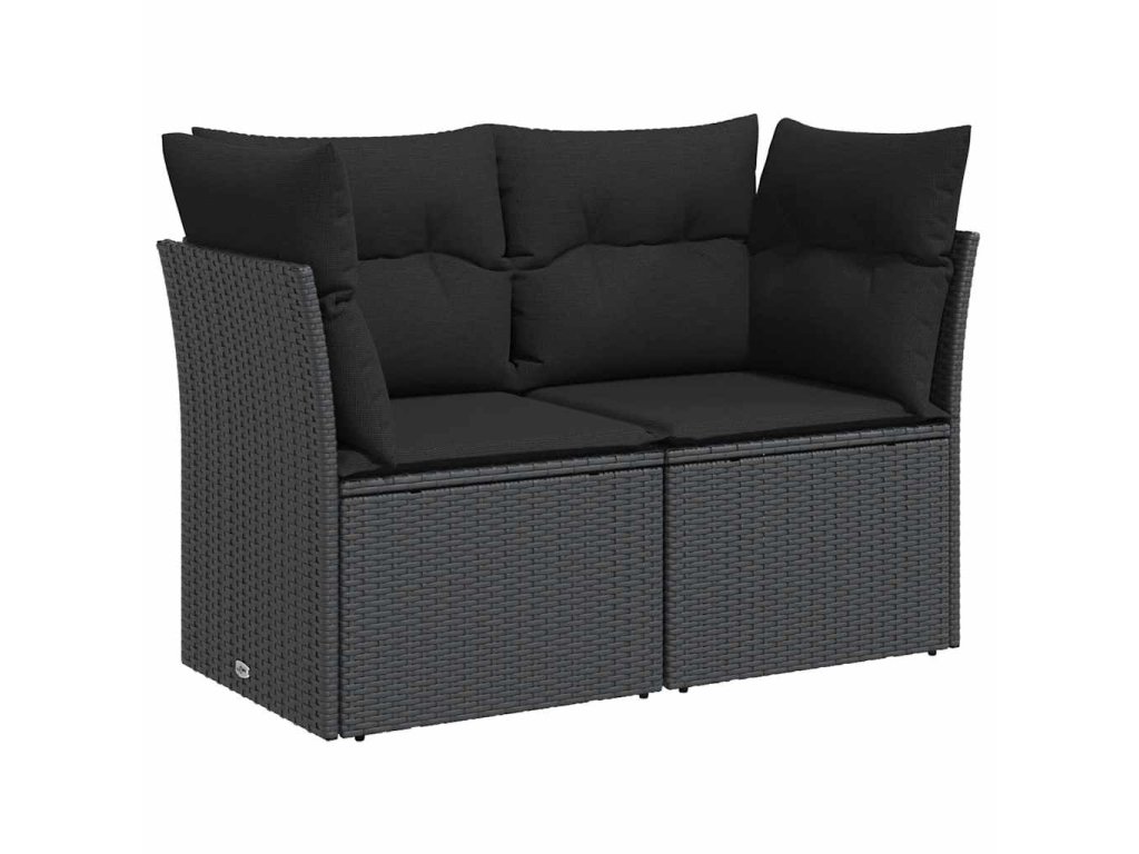 Multidom Záhradná pohovka s vankúšmi, 2-miestna, čierna, polyratan