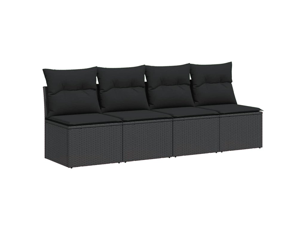Multidom Záhradná pohovka s vankúšmi, 4-miestna, čierna, polyratan