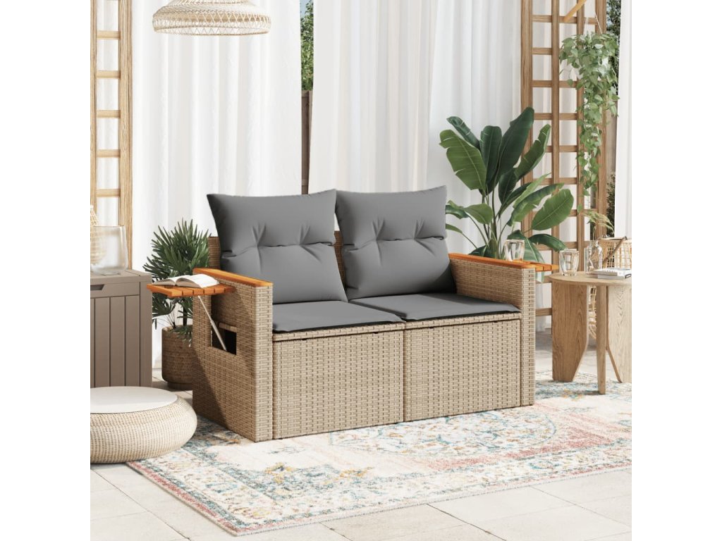 Multidom Záhradná pohovka s vankúšmi 2-miestna béžová polyratanová