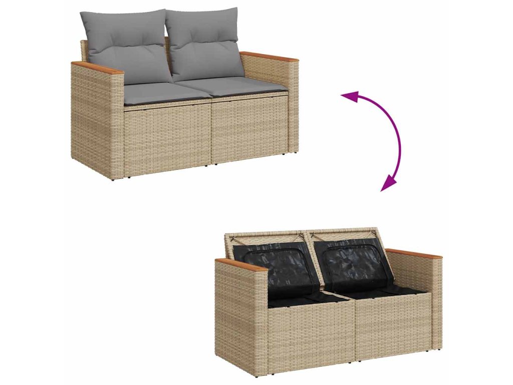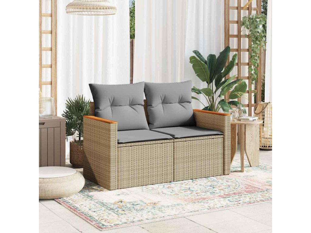 Multidom Záhradná pohovka s vankúšmi 2-miestna béžová polyratanová