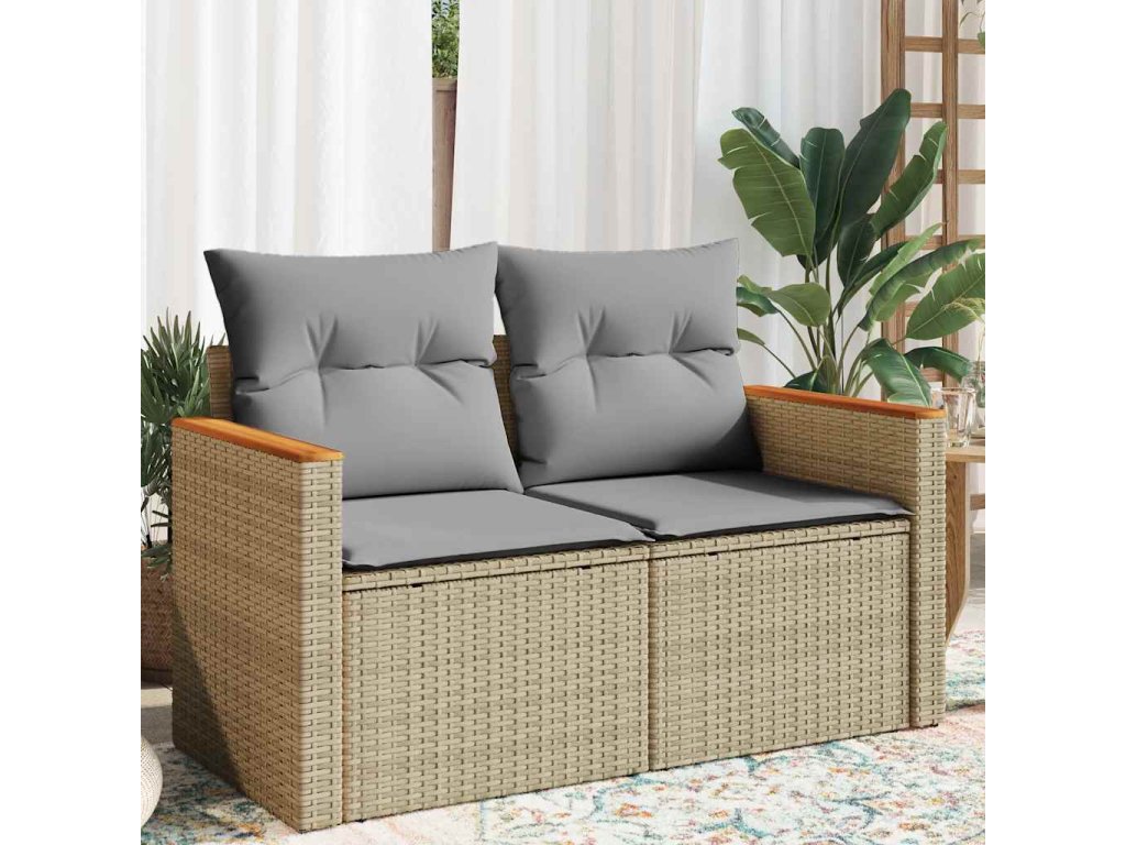 Multidom Záhradná pohovka s vankúšmi 2-miestna béžová polyratanová