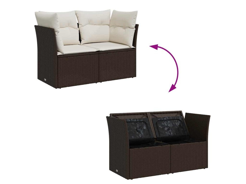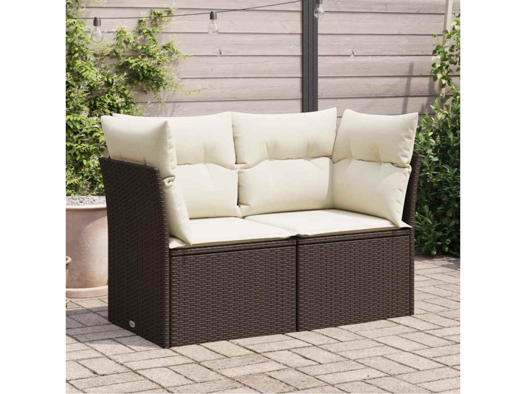 Multidom Záhradná pohovka s vankúšmi 2-miestna hnedá polyratan
