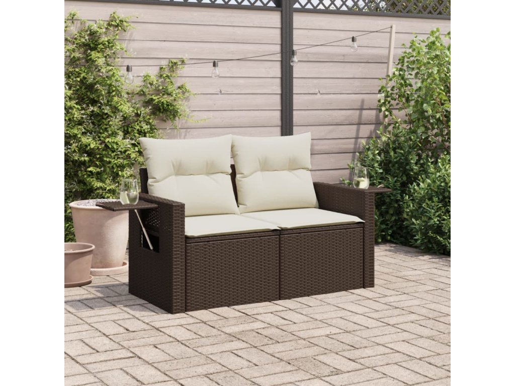 Multidom Záhradná pohovka s vankúšmi 2-miestna hnedá polyratan