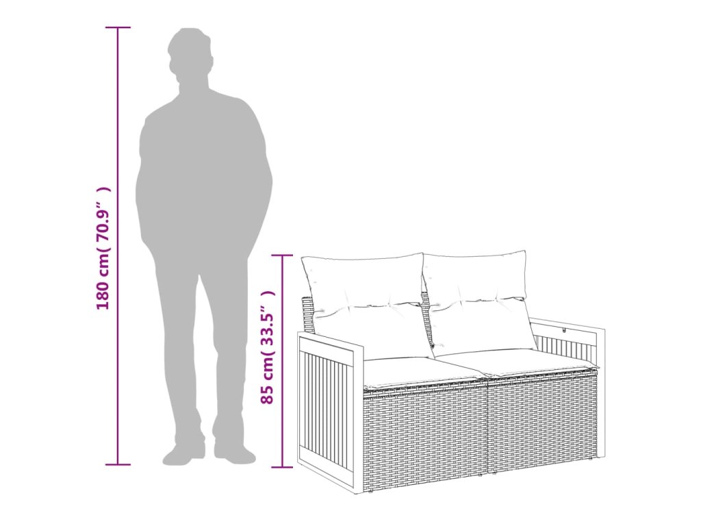 Multidom Záhradná pohovka s vankúšmi 2-miestna sivá polyratanová
