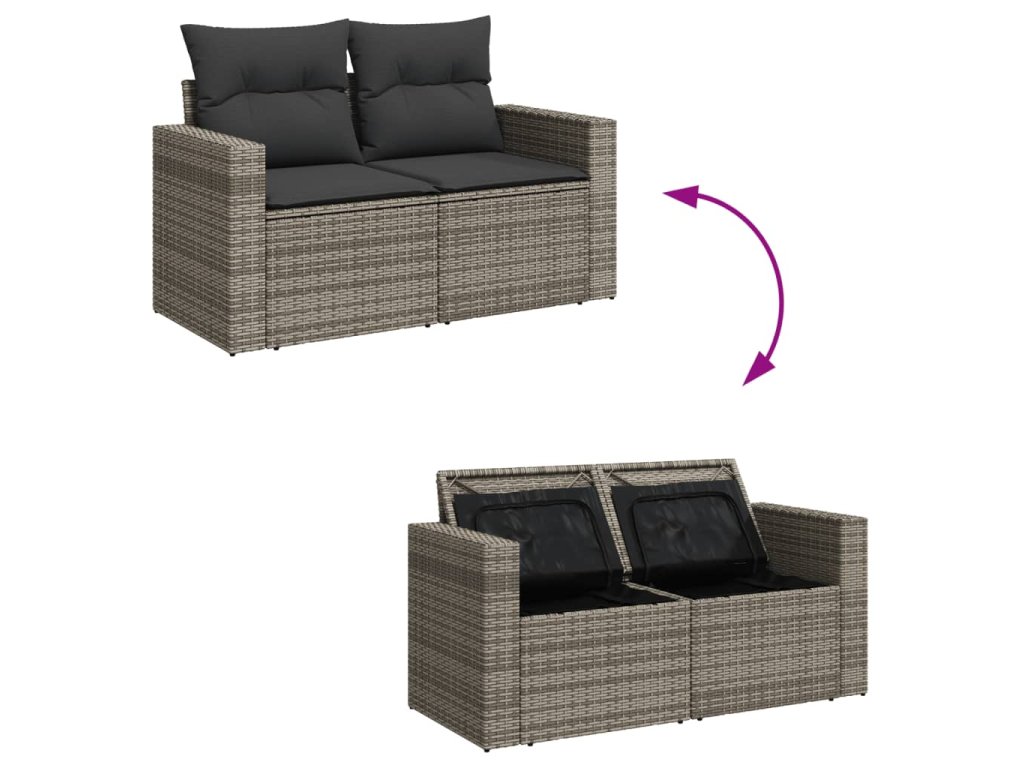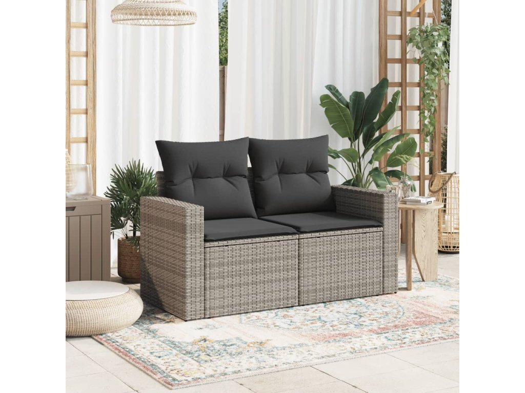 Multidom Záhradná pohovka s vankúšmi 2-miestna sivá polyratanová