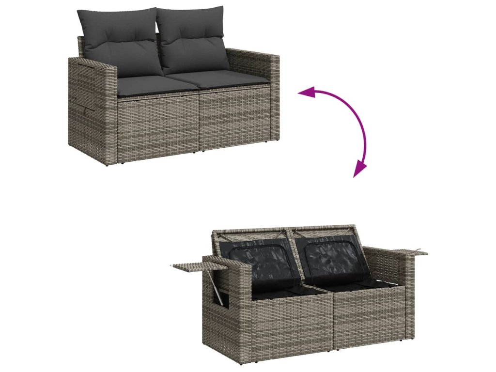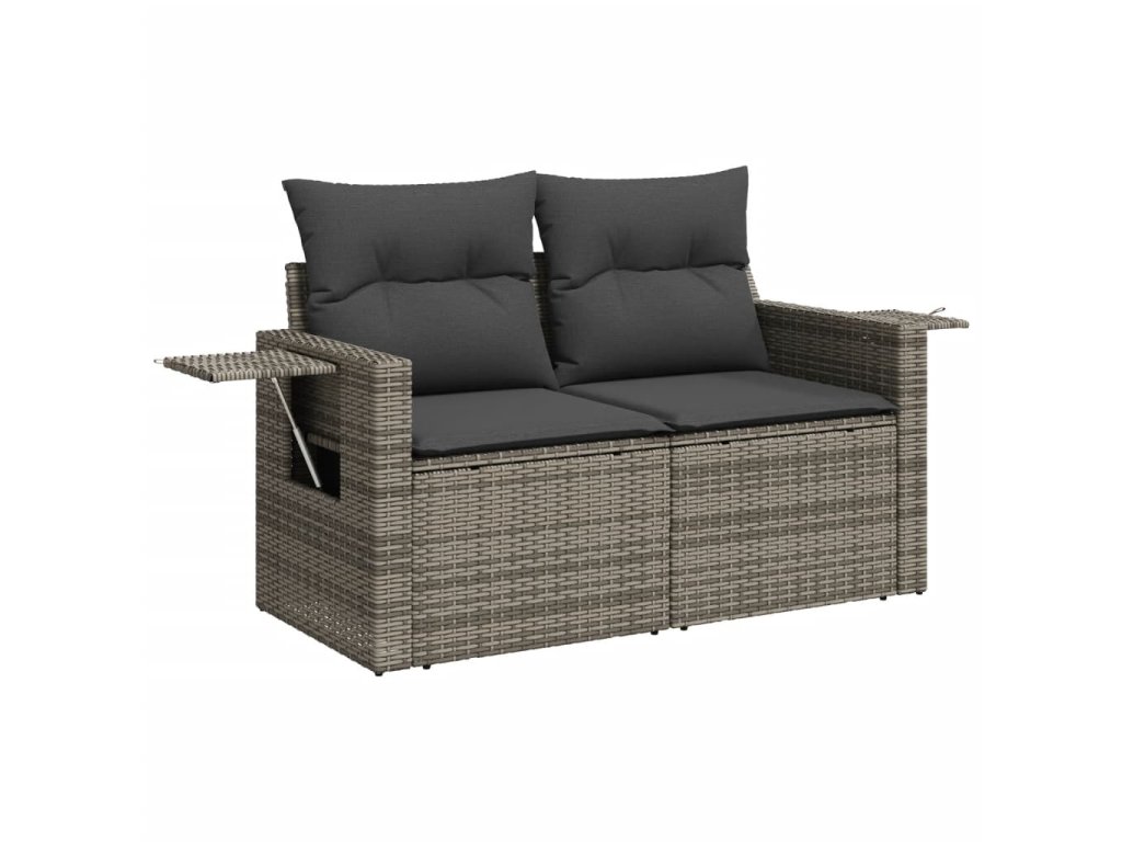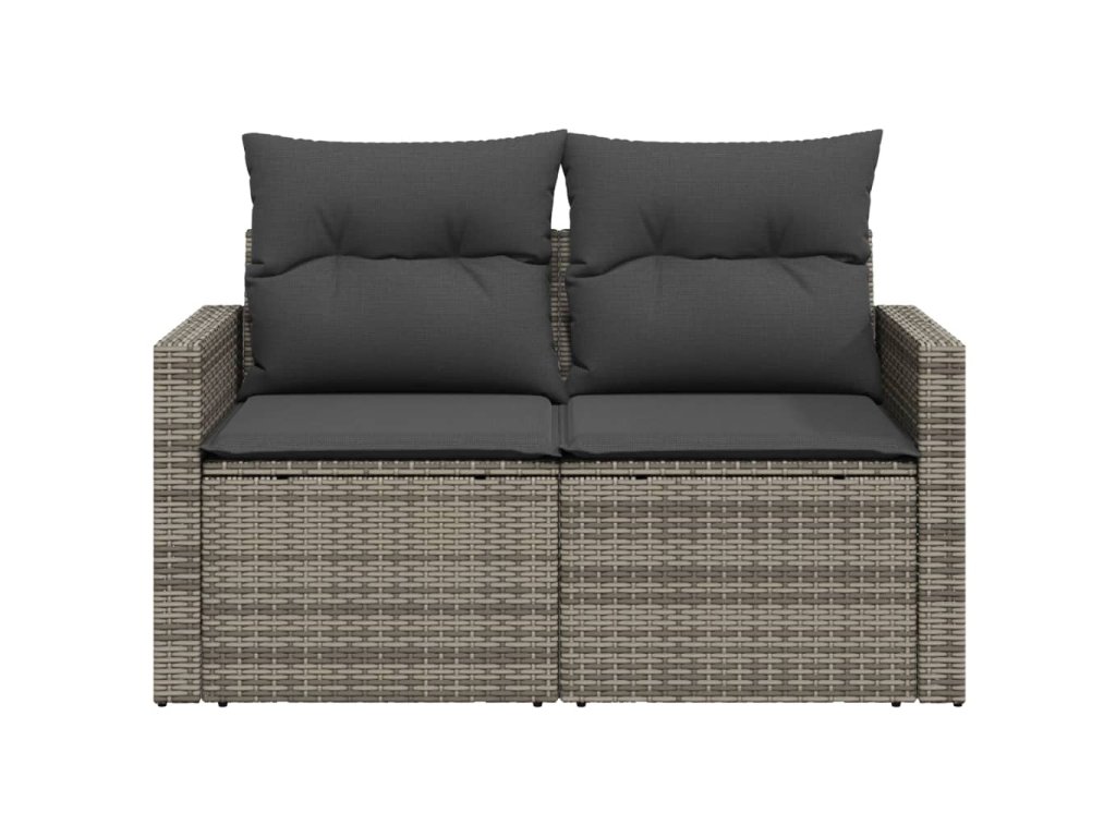 Multidom Záhradná pohovka s vankúšmi 2-miestna sivá polyratanová