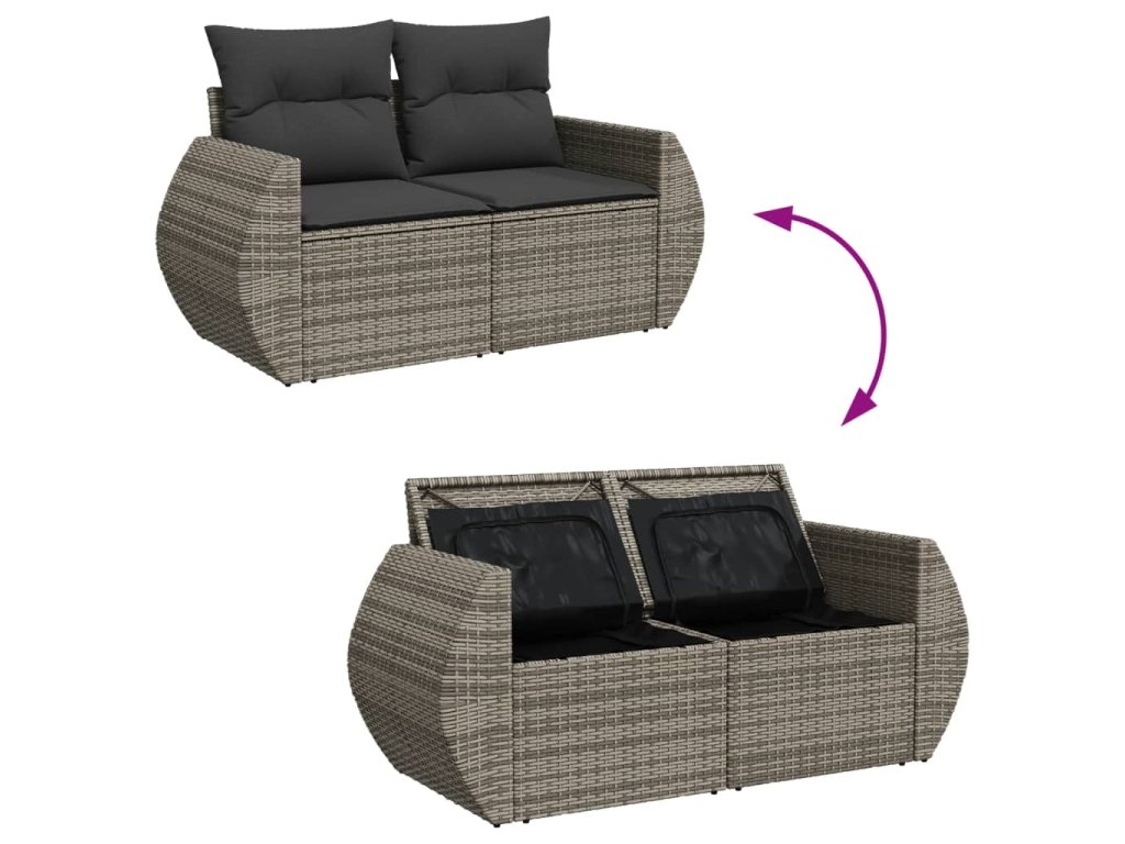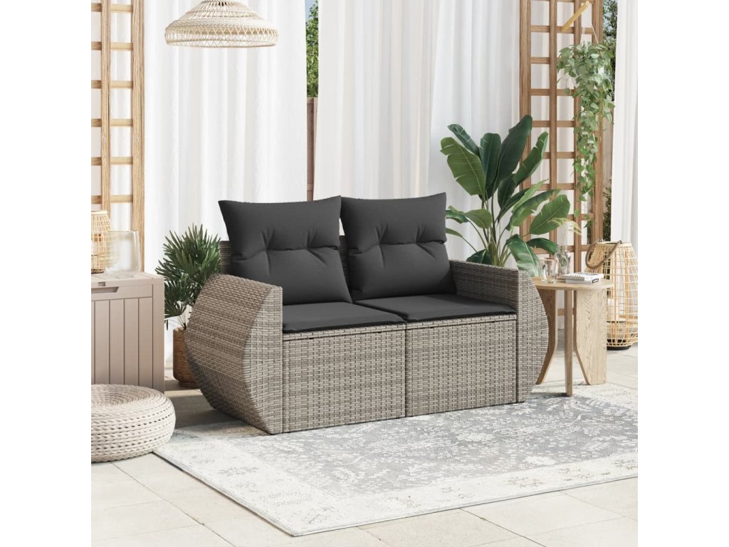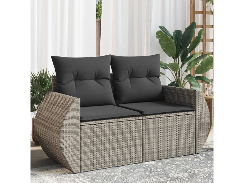 Multidom Záhradná pohovka s vankúšmi 2-miestna sivá polyratanová