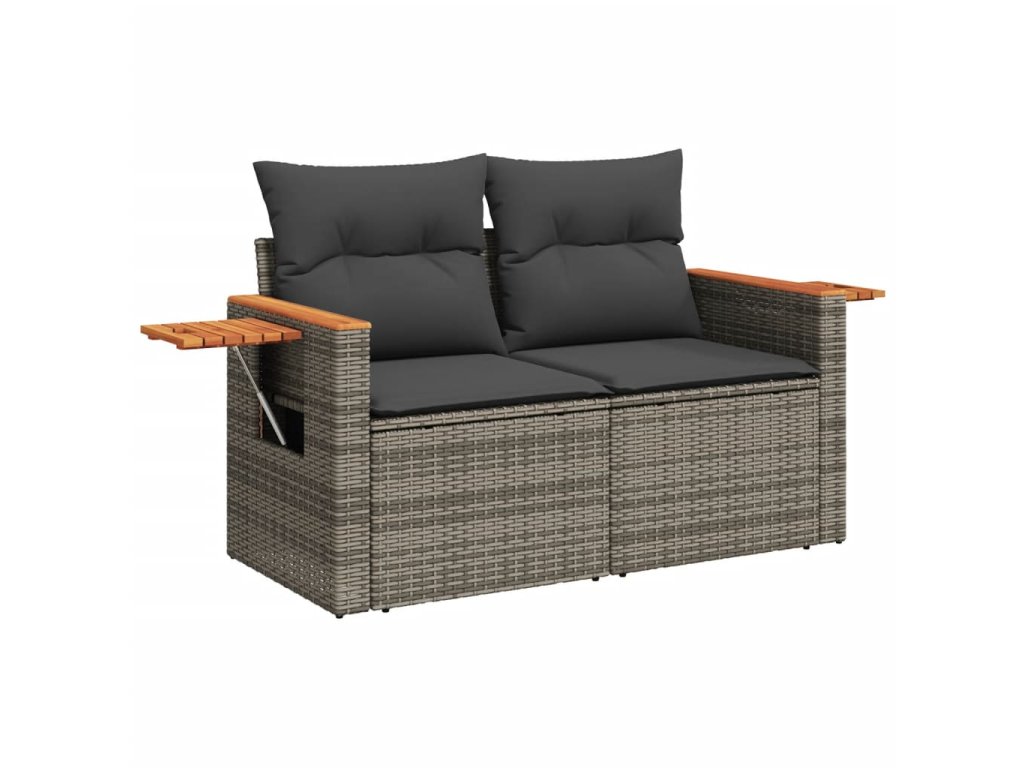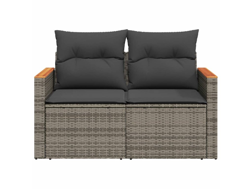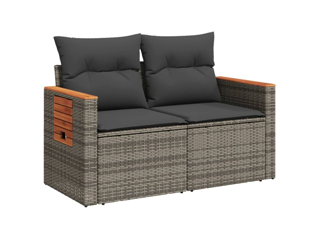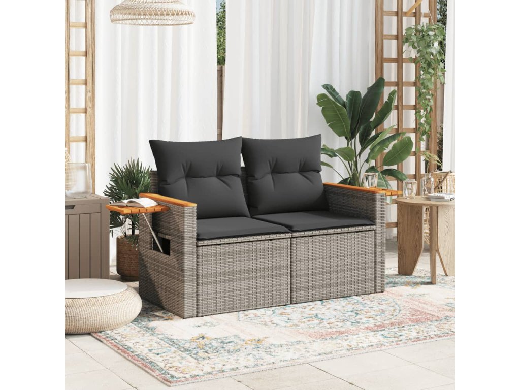 Multidom Záhradná pohovka s vankúšmi 2-miestna sivá polyratanová