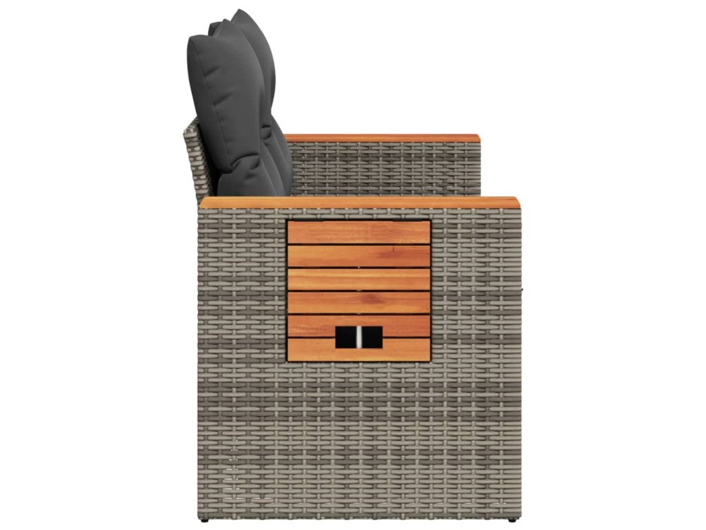- Materiál: PE ratan, práškovaná oceľ, masívne akáciové drevo s olejovým náterom