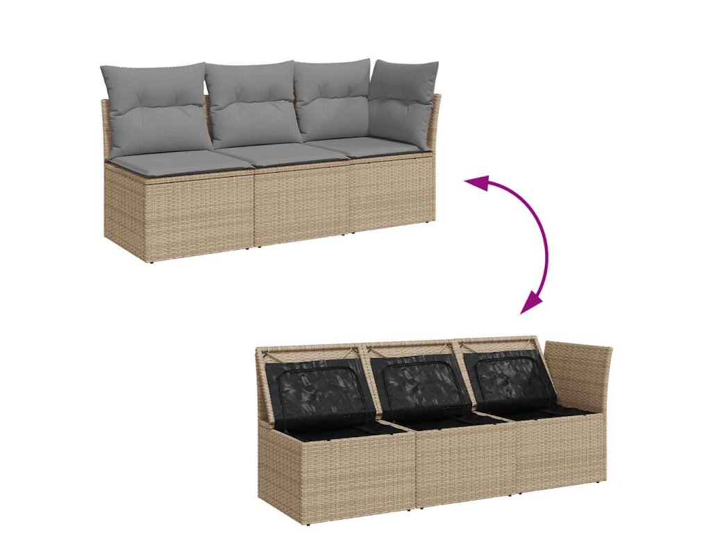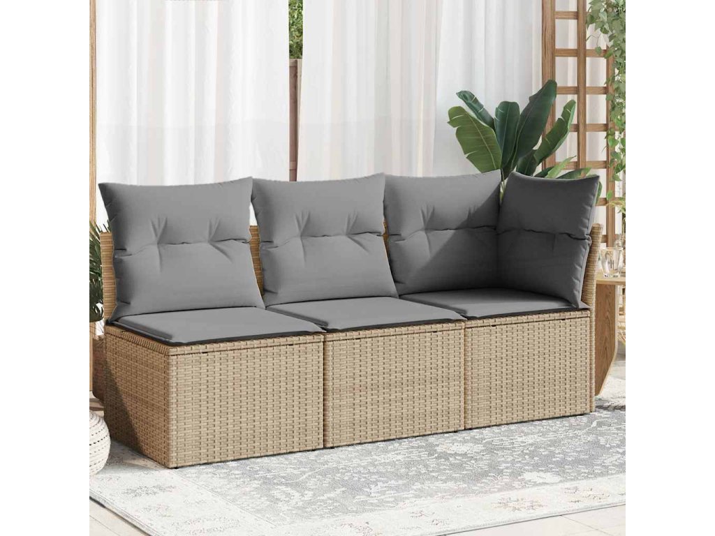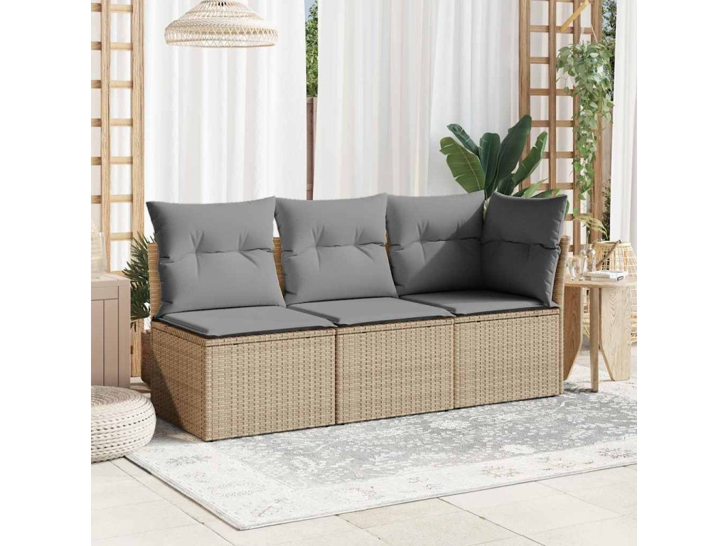 Multidom Záhradná pohovka s vankúšmi 3-miestna béžová polyratanová
