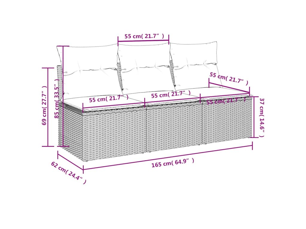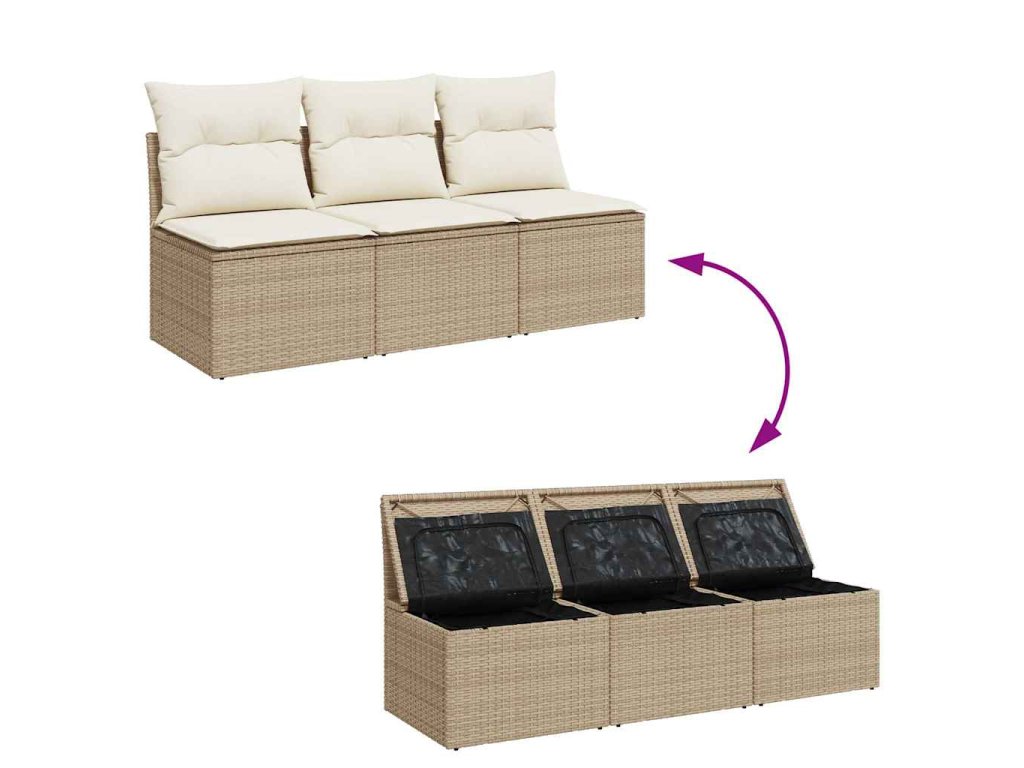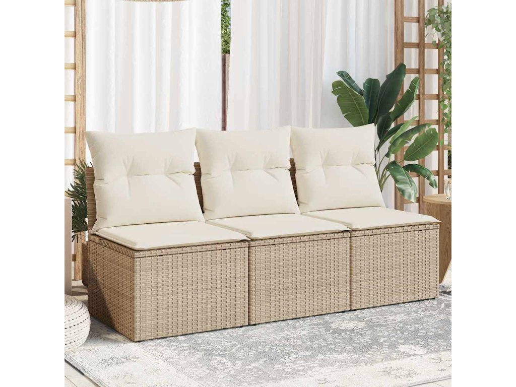 Multidom Záhradná pohovka s vankúšmi 3-miestna béžová polyratanová