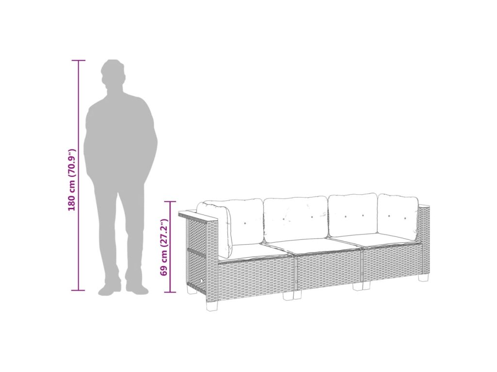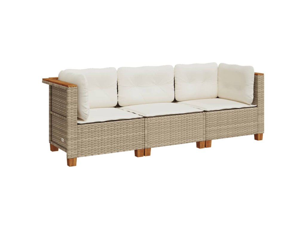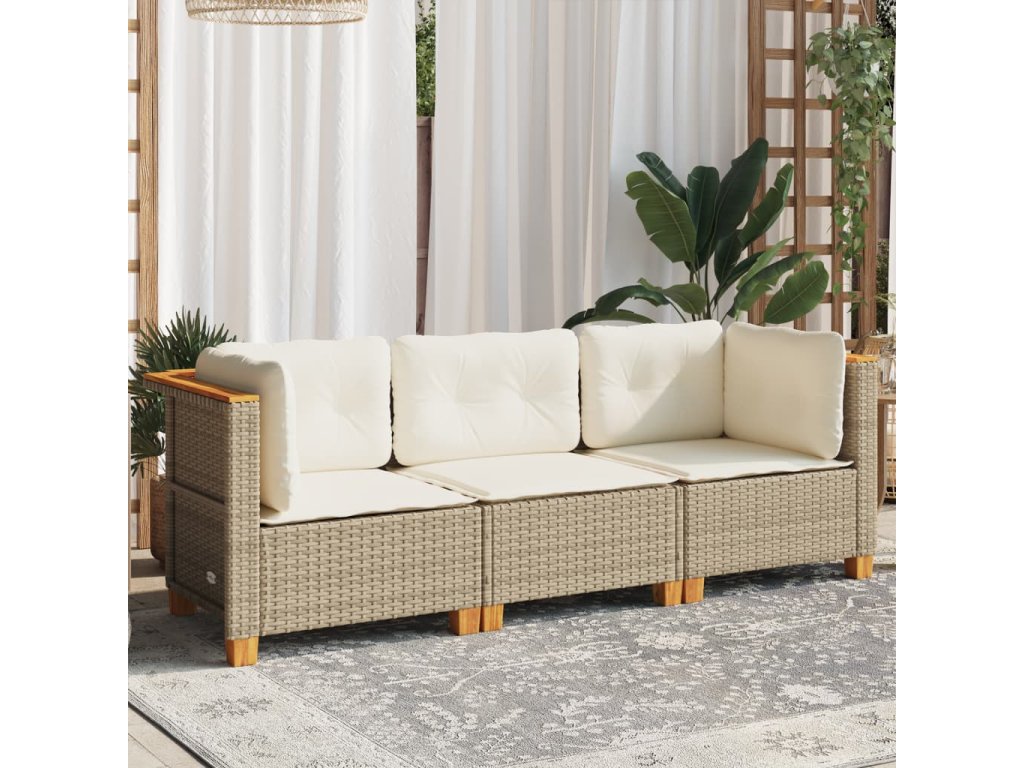 Multidom Záhradná pohovka s vankúšmi 3-miestna béžová polyratanová