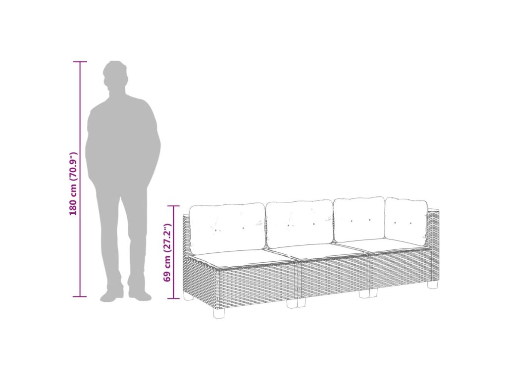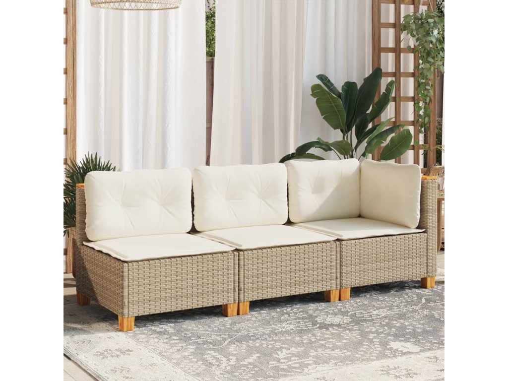 Multidom Záhradná pohovka s vankúšmi 3-miestna béžová polyratanová