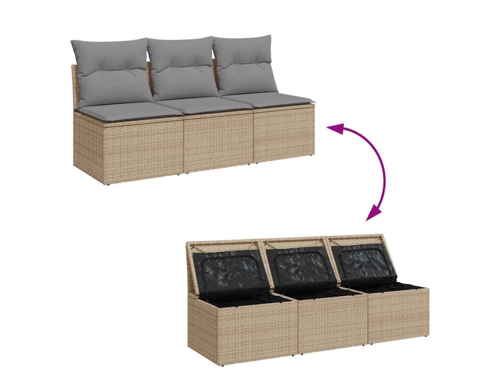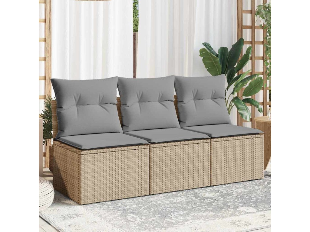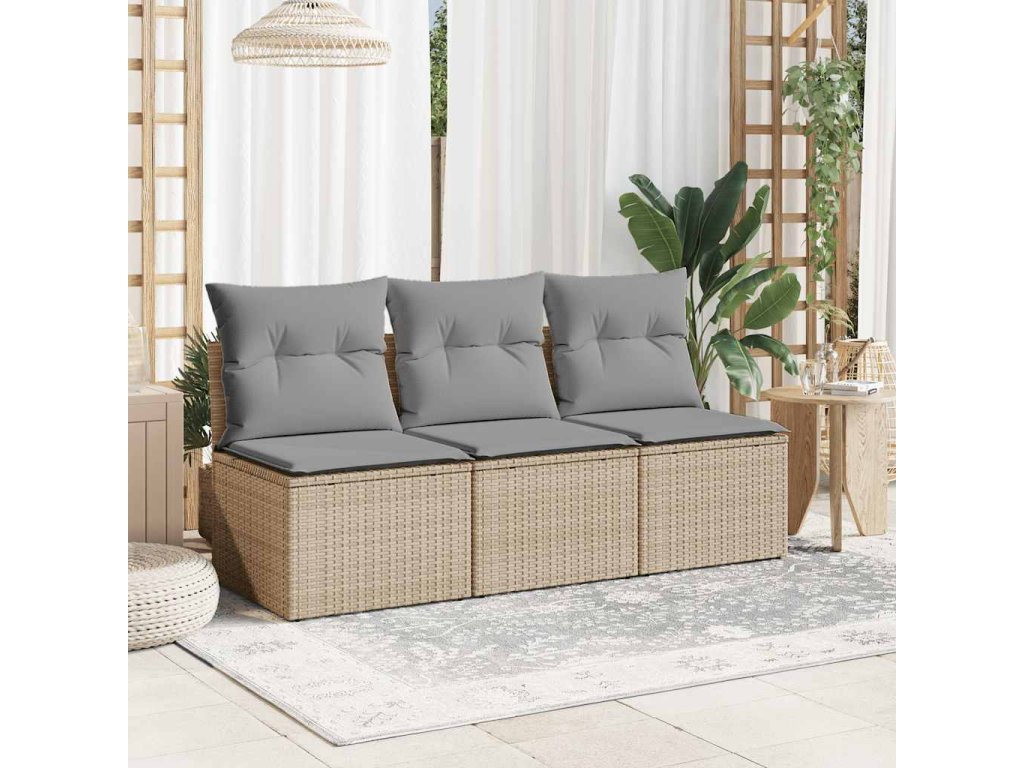 Multidom Záhradná pohovka s vankúšmi 3-miestna béžová polyratanová