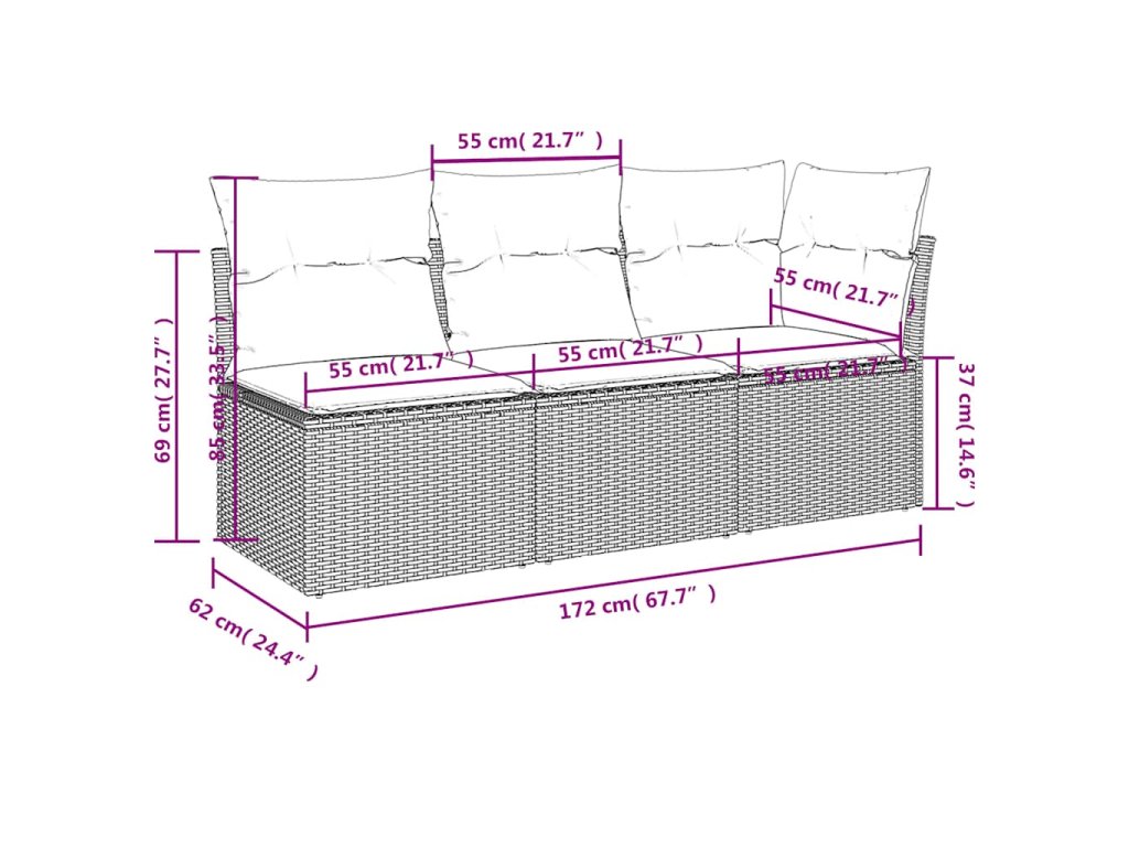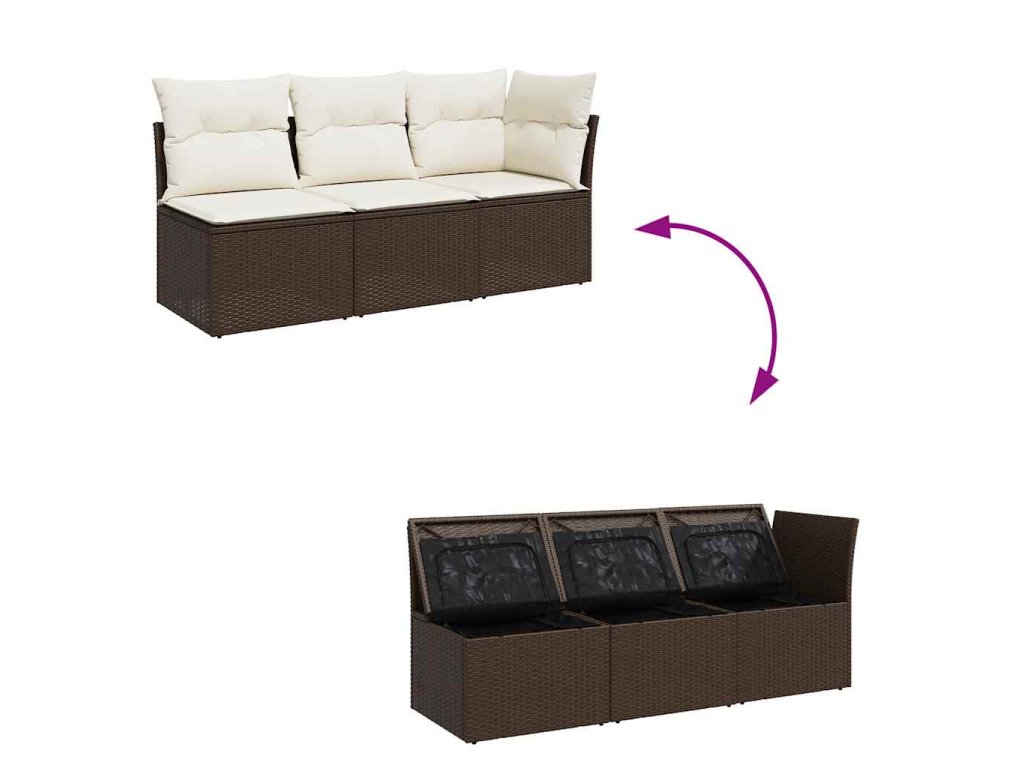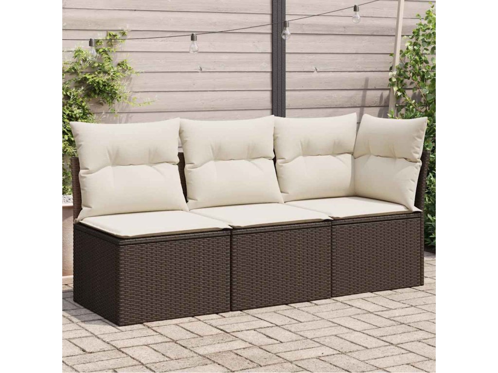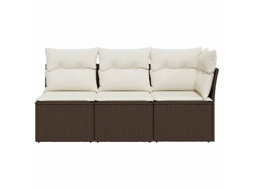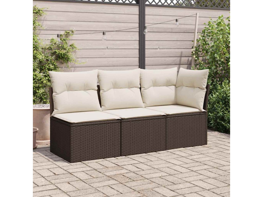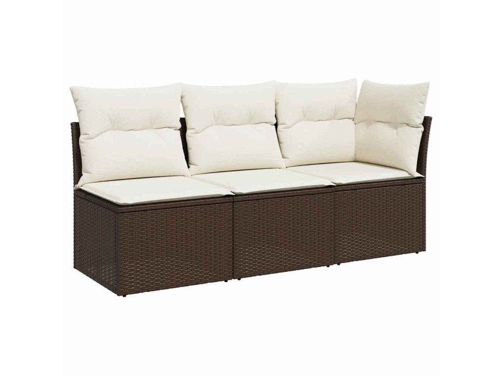 Multidom Záhradná pohovka s vankúšmi 3-miestna hnedá polyratan