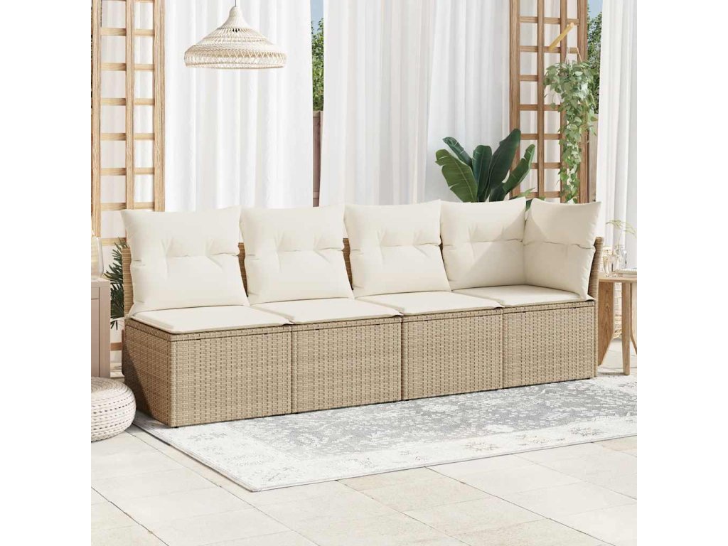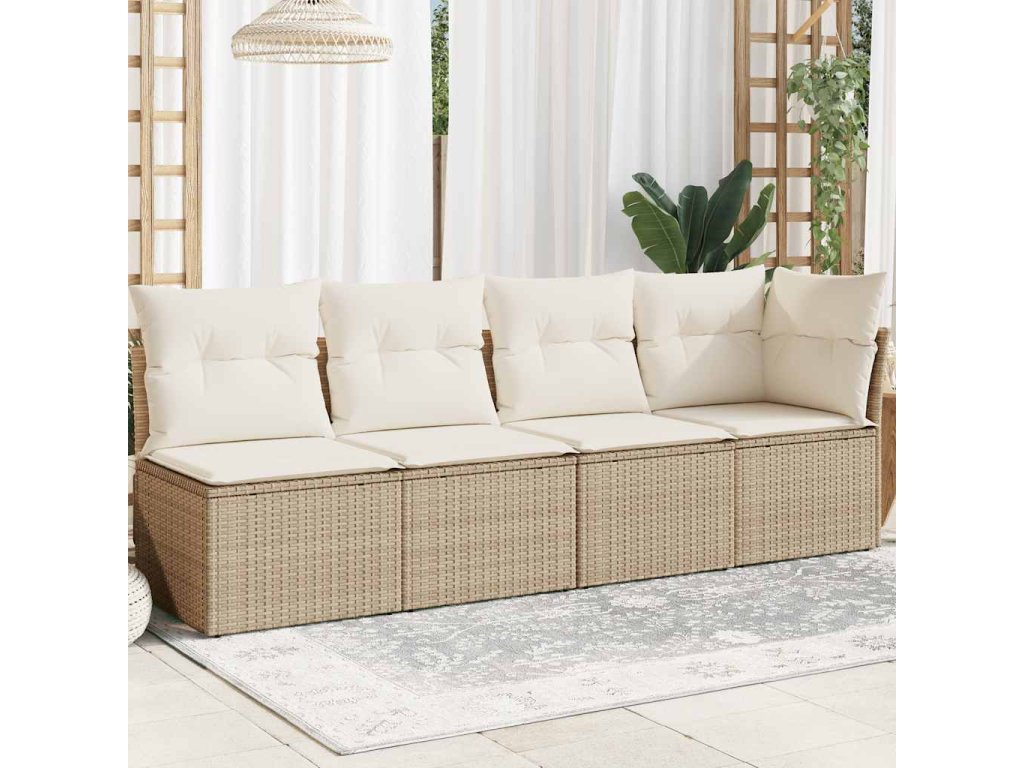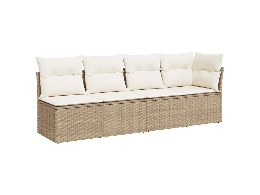 Multidom Záhradná pohovka s vankúšmi 4-miestna béžová polyratanová