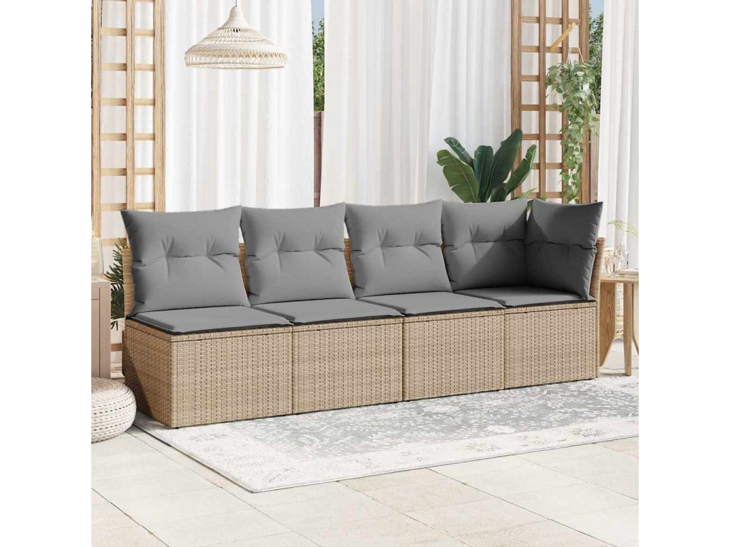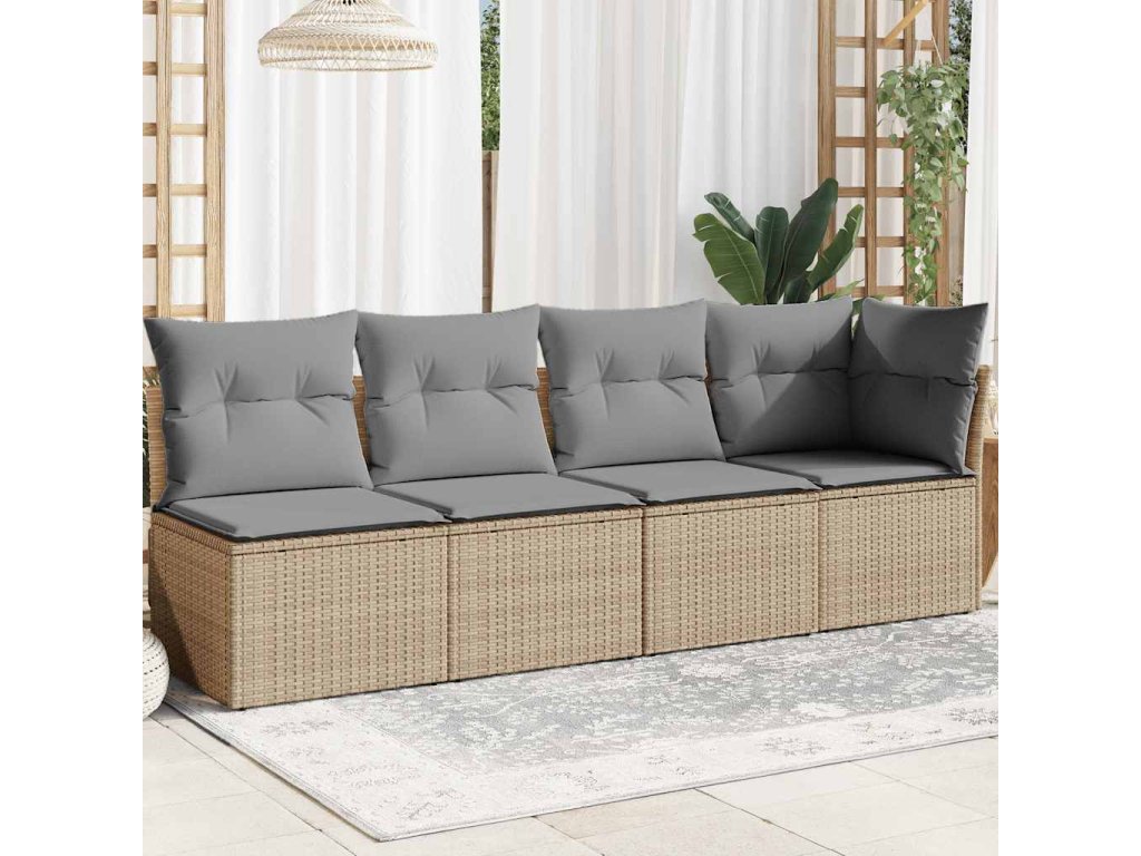 Multidom Záhradná pohovka s vankúšmi 4-miestna béžová polyratanová