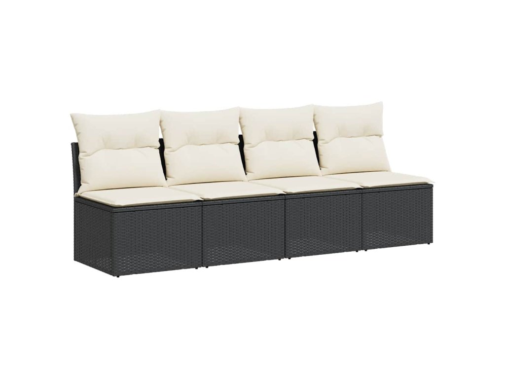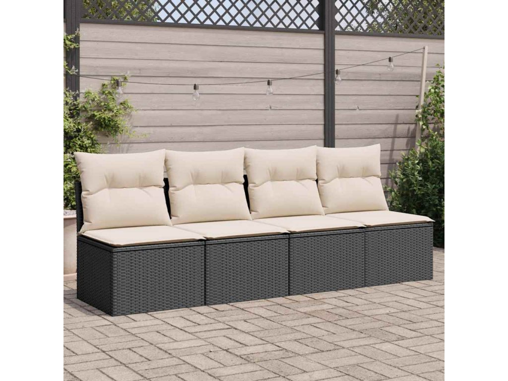 Multidom Záhradná pohovka s vankúšmi 4-miestna čierna polyratan