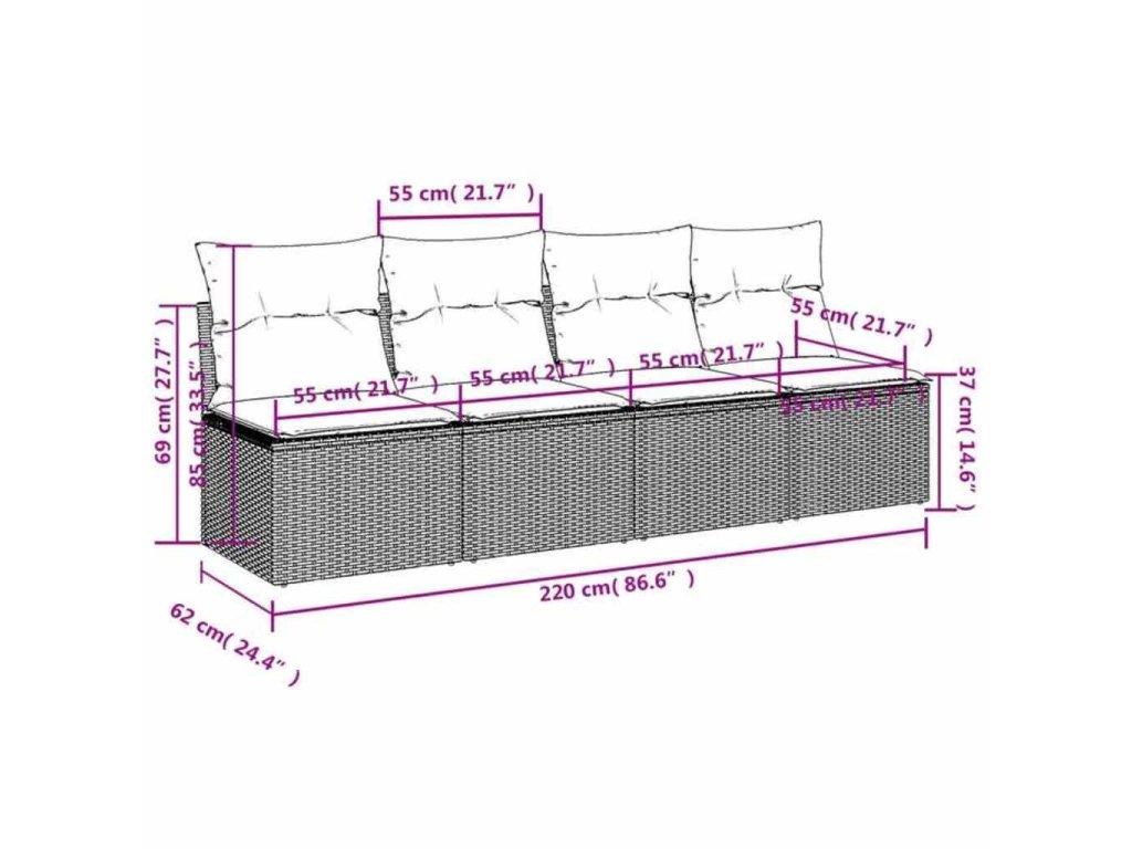 - Rozmery: 220 x 62 x 69 cm (Š x H x V)