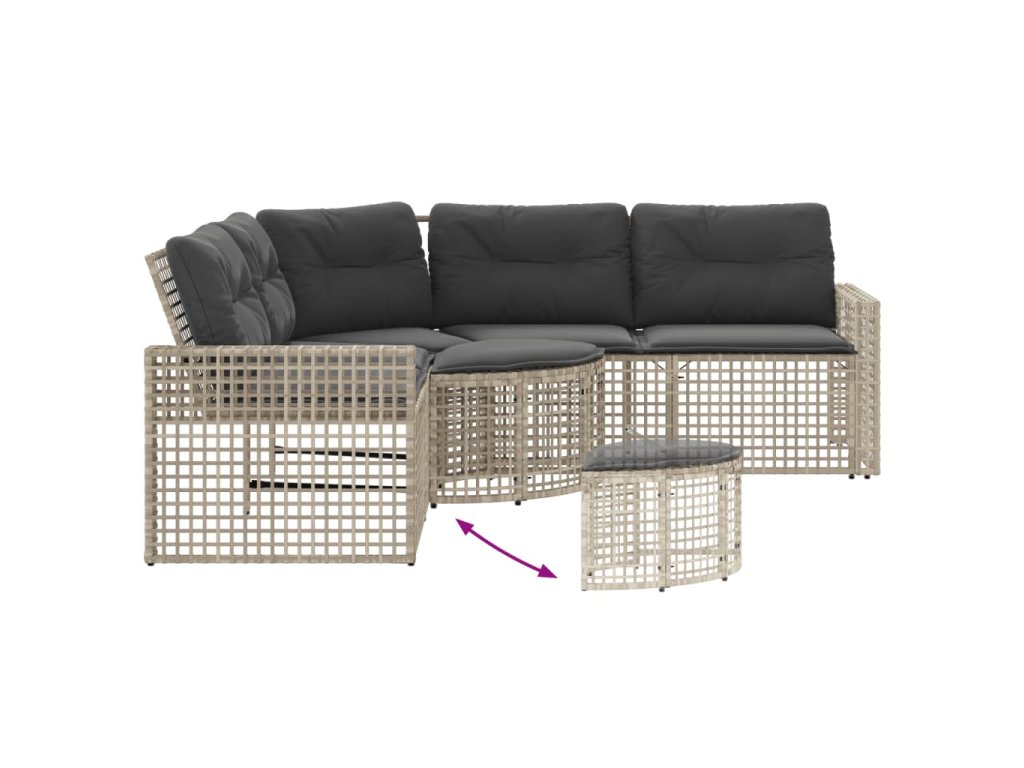 Multidom Záhradná pohovka s vankúšmi a podnožkou L svetlosivá polyratan