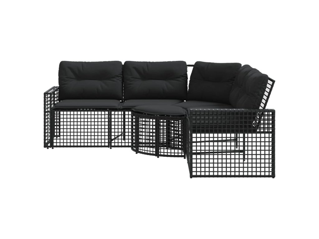 Multidom Záhradná pohovka s vankúšmi a podnožkou tvar L čierna polyratan
