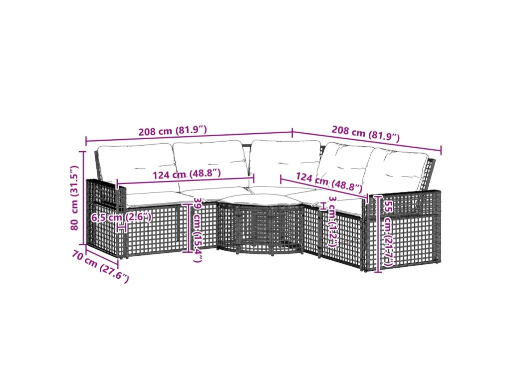 - Rozmery: 208 x 208 x 80 cm (Š x H x V)