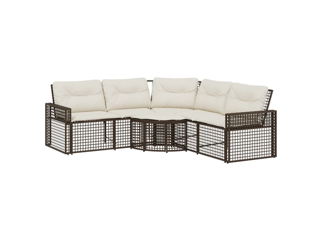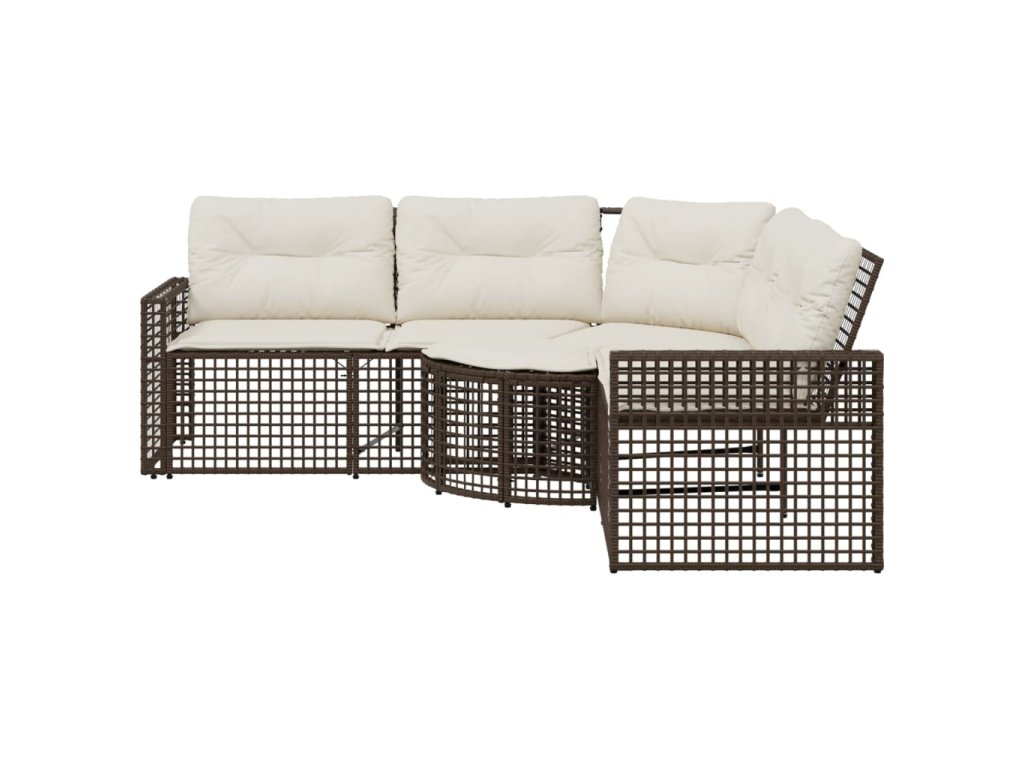 Multidom Záhradná pohovka s vankúšmi a podnožkou tvar L hnedá polyratan