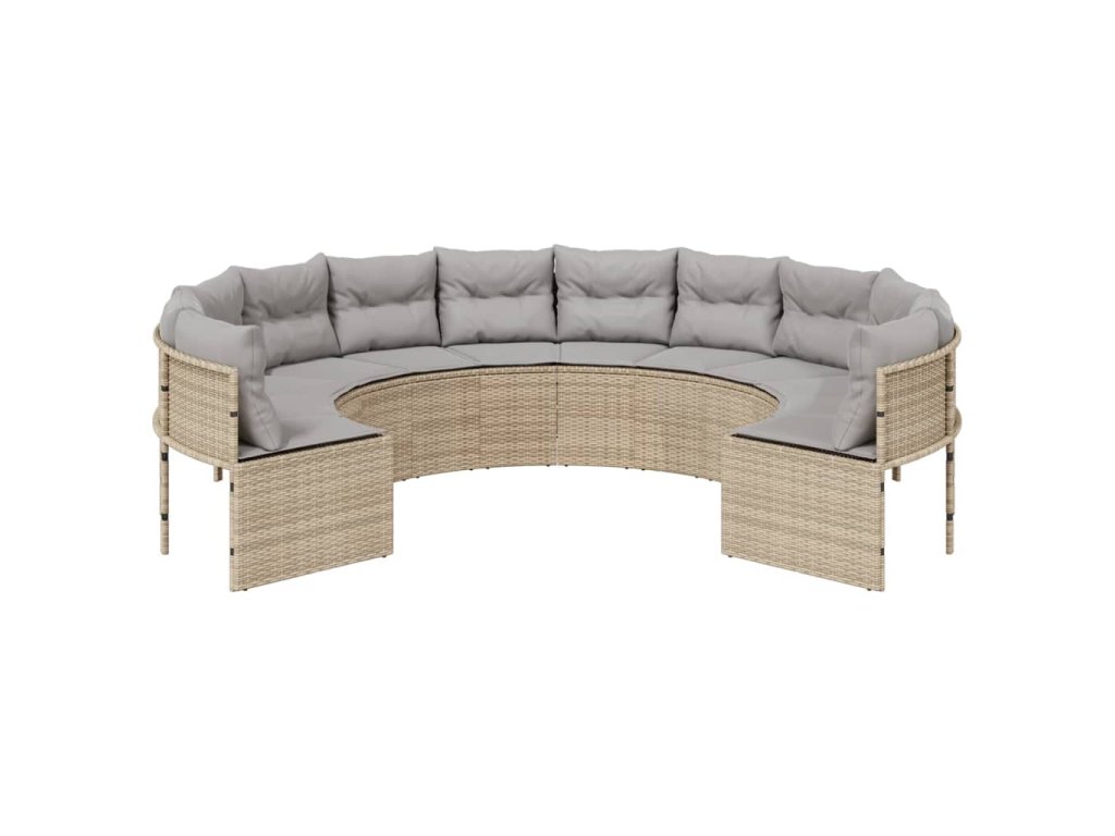 Multidom Záhradná pohovka s vankúšmi okrúhla béžová polyratanová